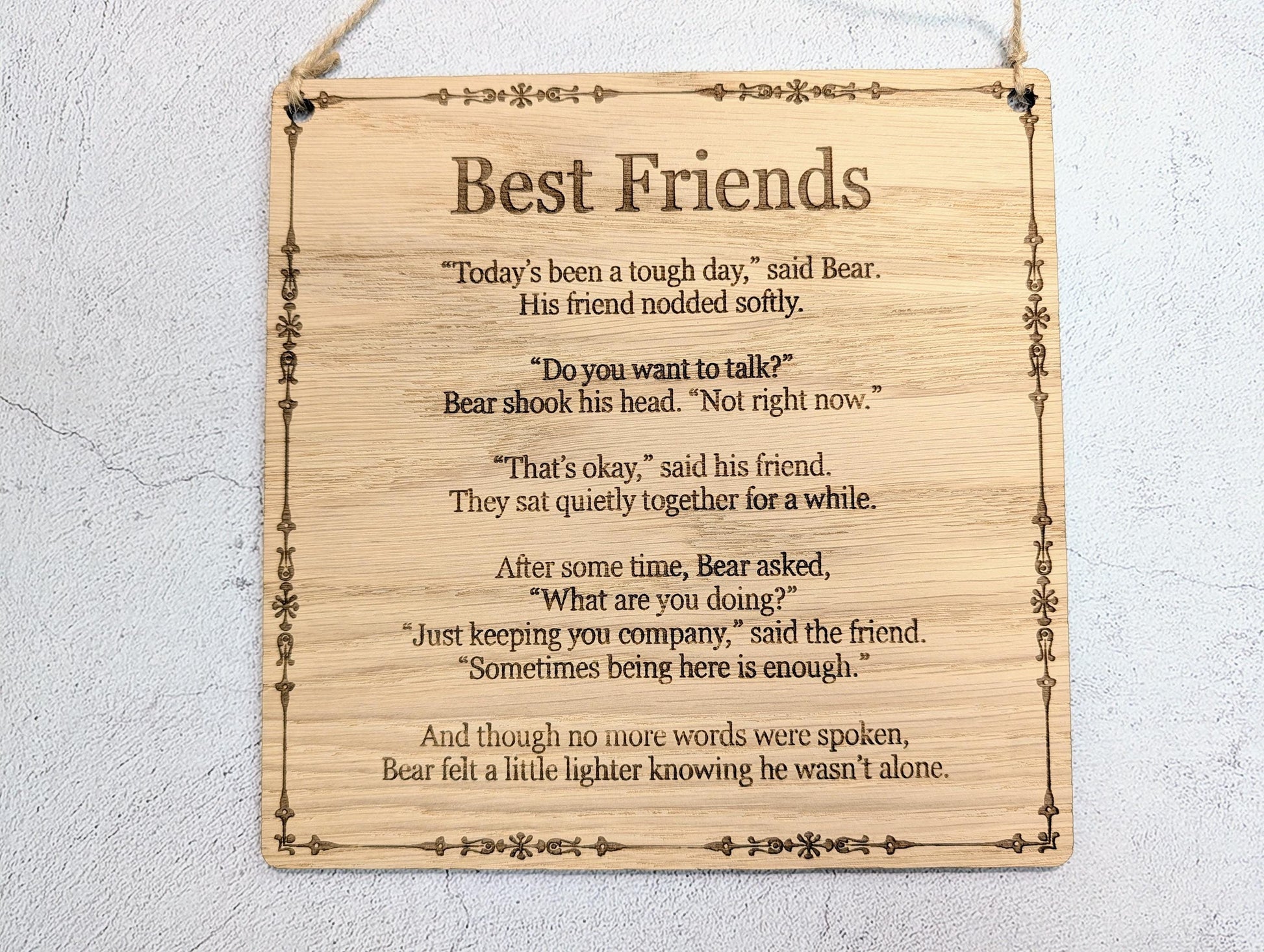 Best Friends Wooden Quote Plaque – Comforting Friendship Sign, Handmade Oak Veneer Gift, Rustic Eco-Friendly