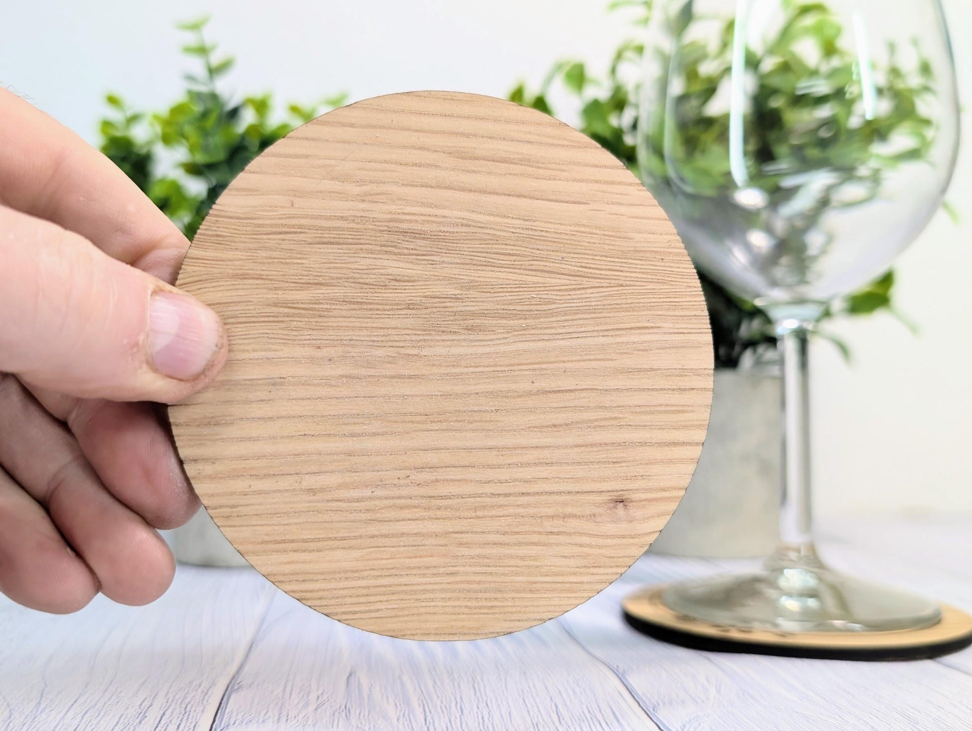 Add a touch of rustic charm to your home with our personalised oak veneer round coasters. Handcrafted in Wales using sustainably sourced wood, these coasters feature a beautifully engraved decorative border, within which you can personalise with your own custom text. Whether it’s for your kitchen, living room, or dining table, these eco-friendly coasters bring warmth and style to any space. Plastic-free packaging ensures your purchase is as kind to the planet as it is stylish!
