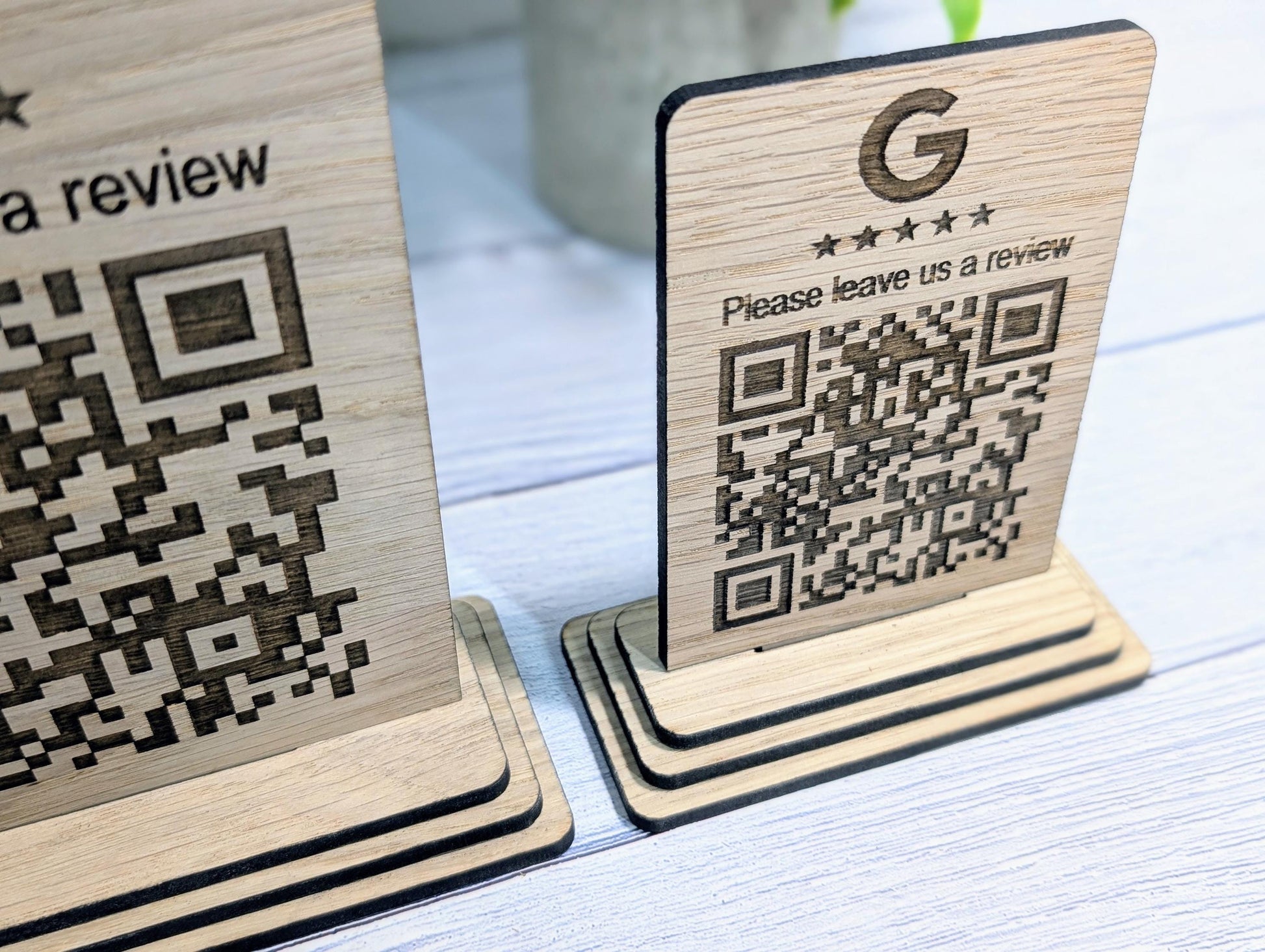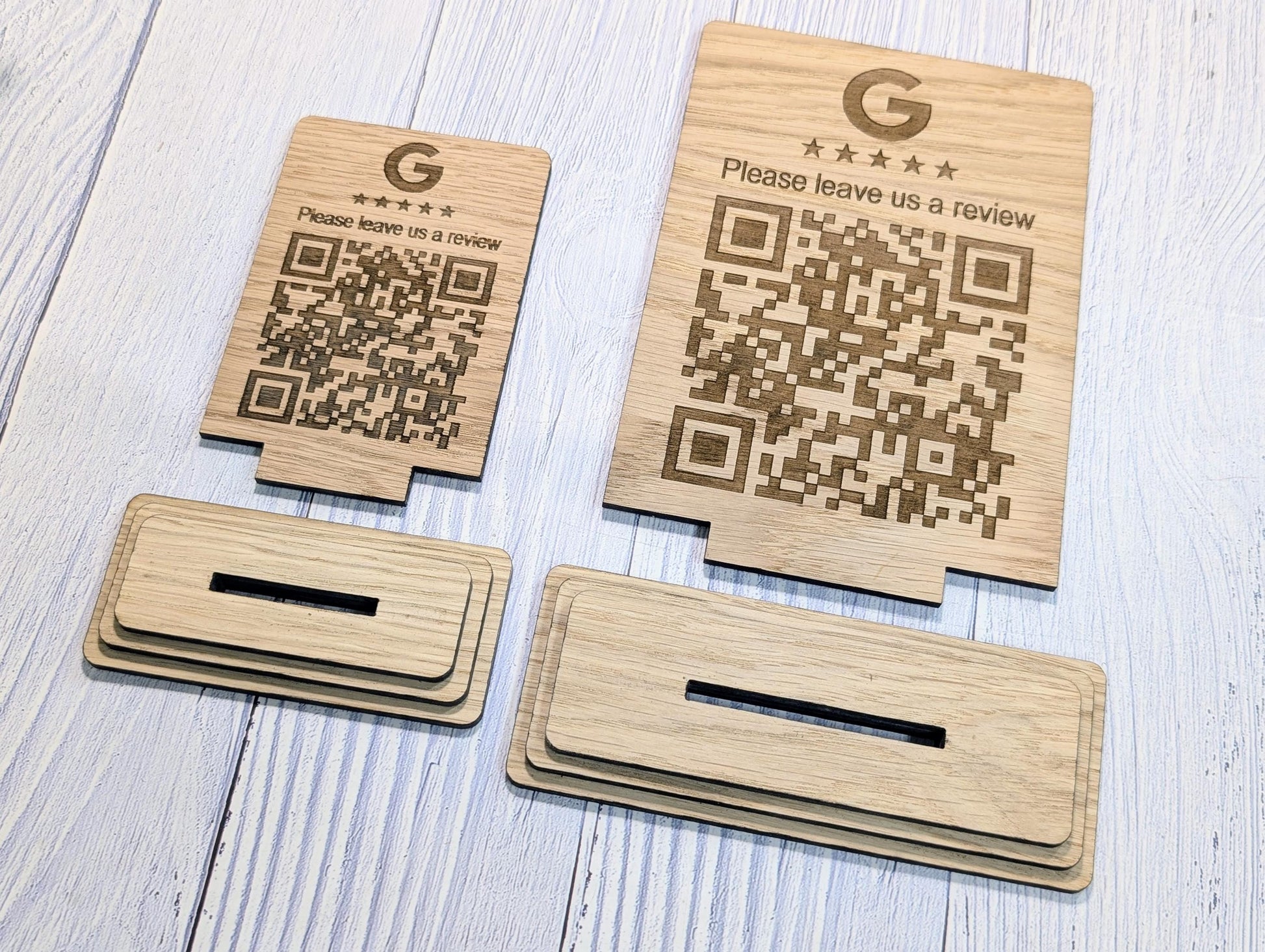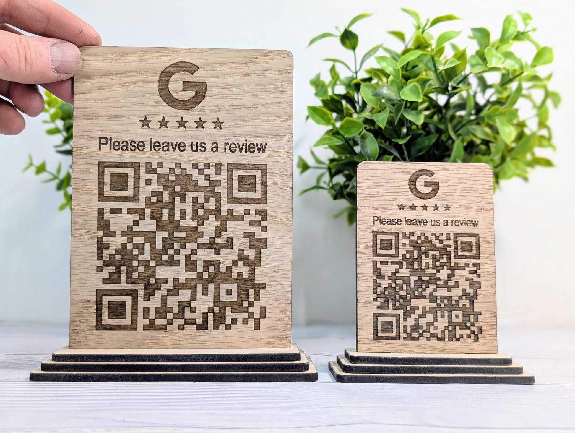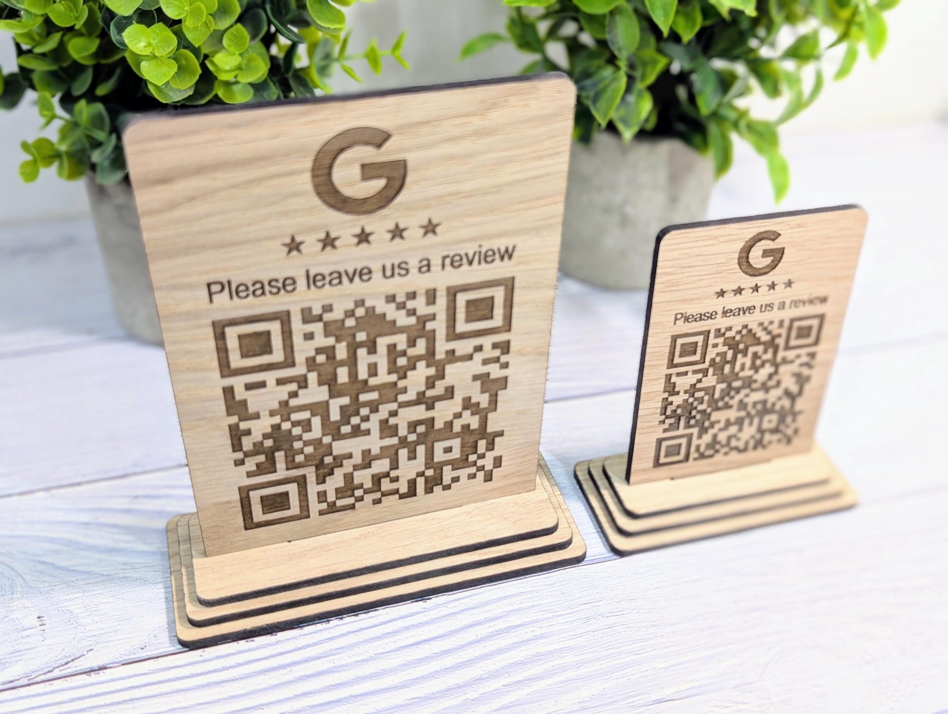 Custom Wooden Google Review Sign with QR Code | Business Review Plaque with Logo | Eco Friendly Point of Sale Display | 2 Sizes