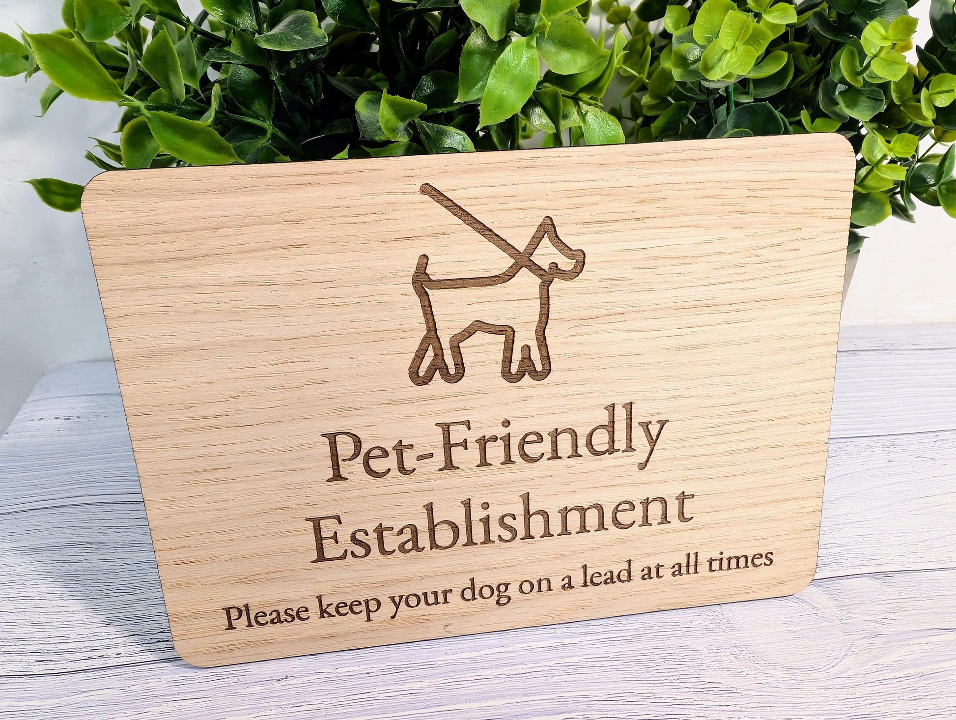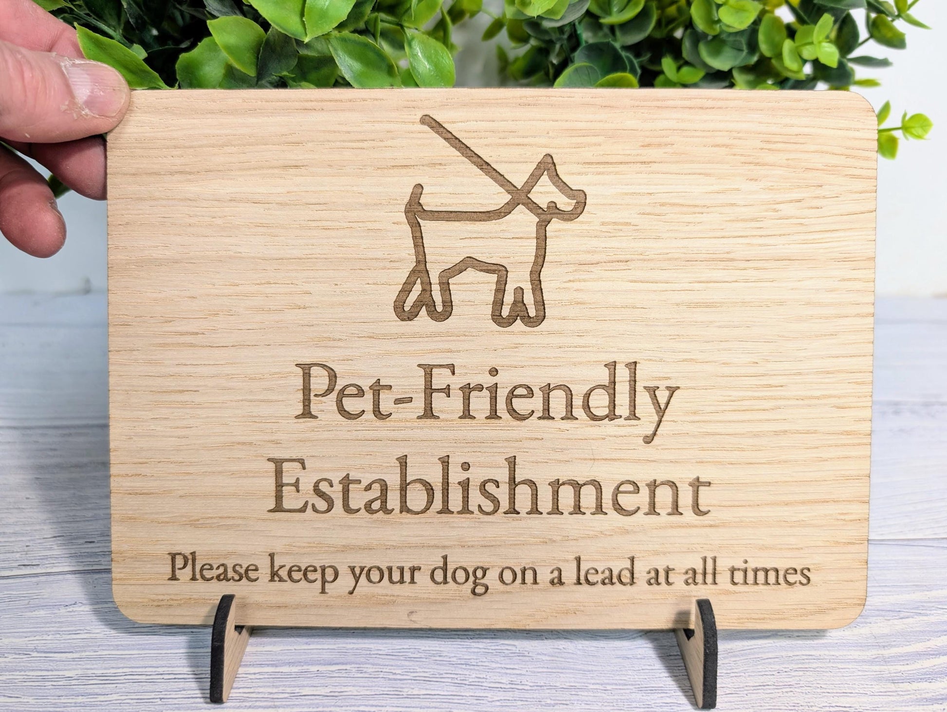 Dog on Lead Sign – Pet Friendly Establishment Sign – Oak Veneer Dog Sign – Keep Dogs on Lead – Optional Wooden Stand