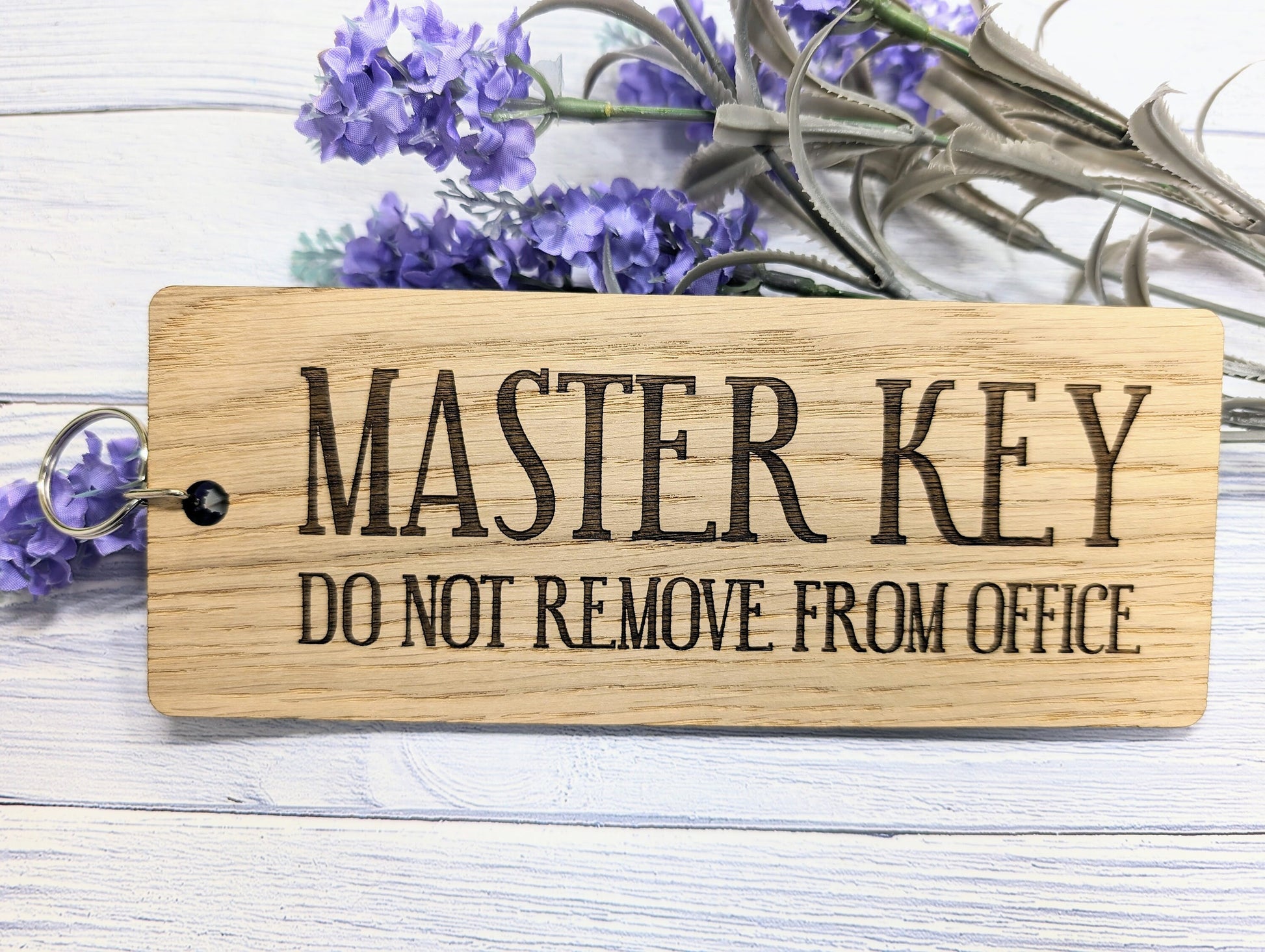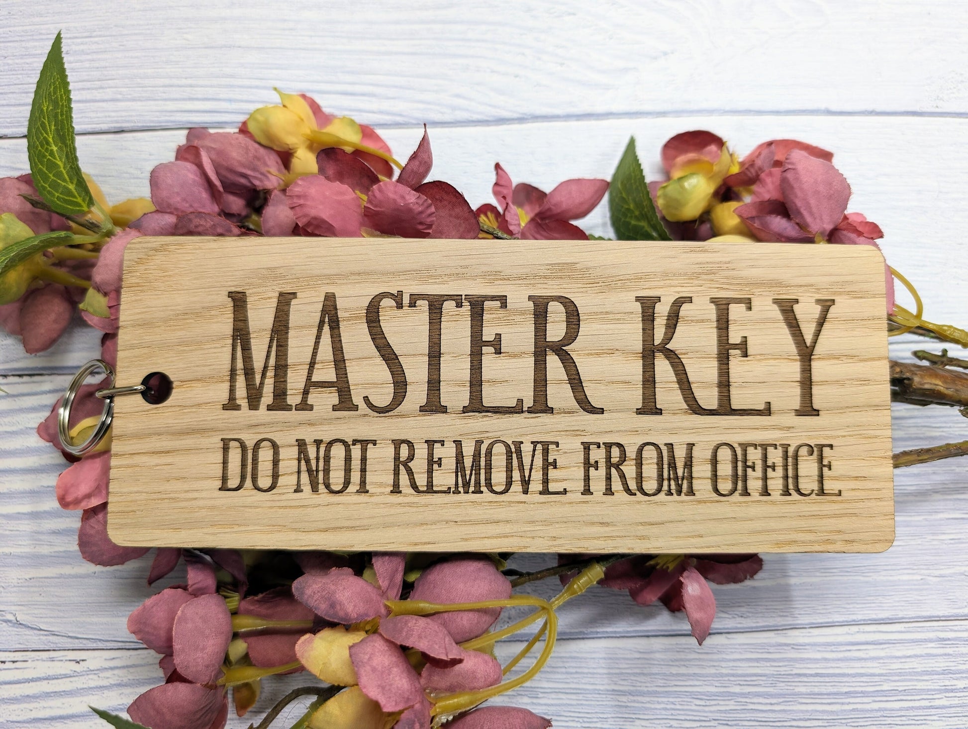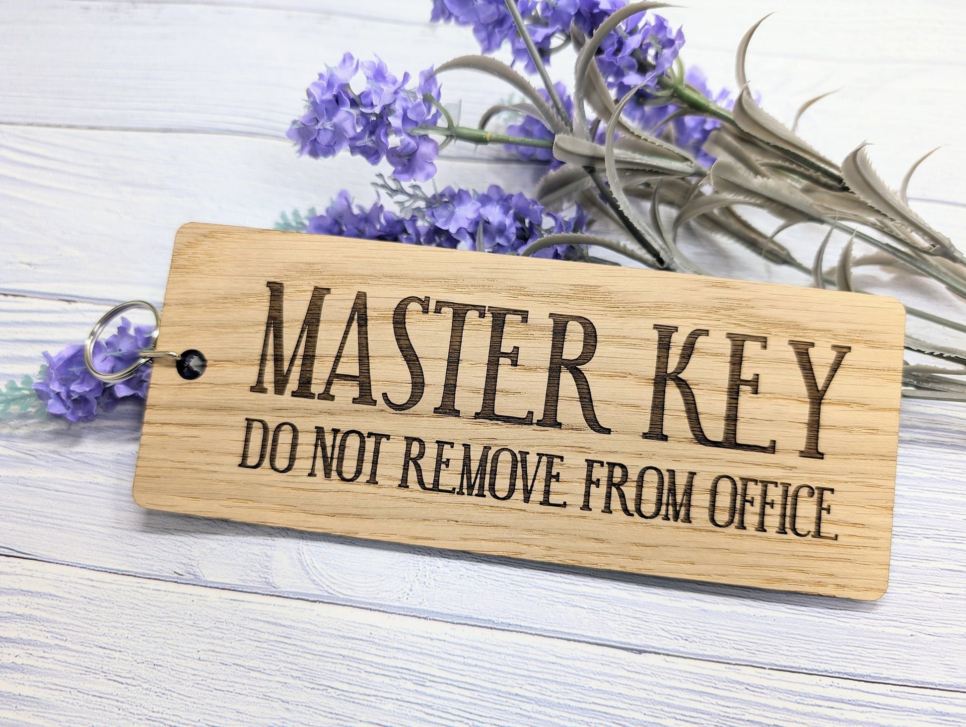 Extra-Large Wooden Keyring 'Master Key - Do Not Remove From Office' - Ideal for Important Keys | Handcrafted in Wales, Eco-Friendly Oak