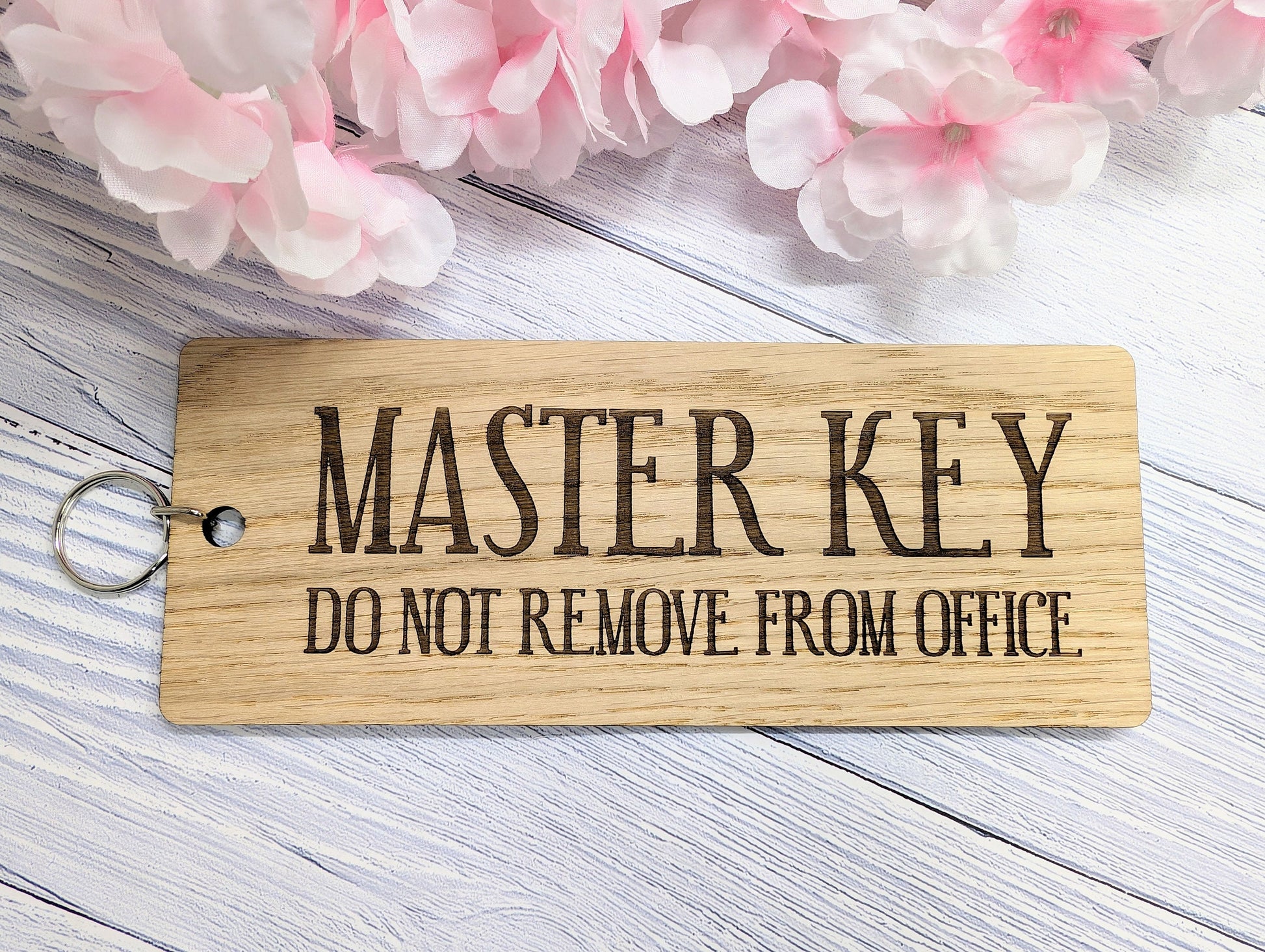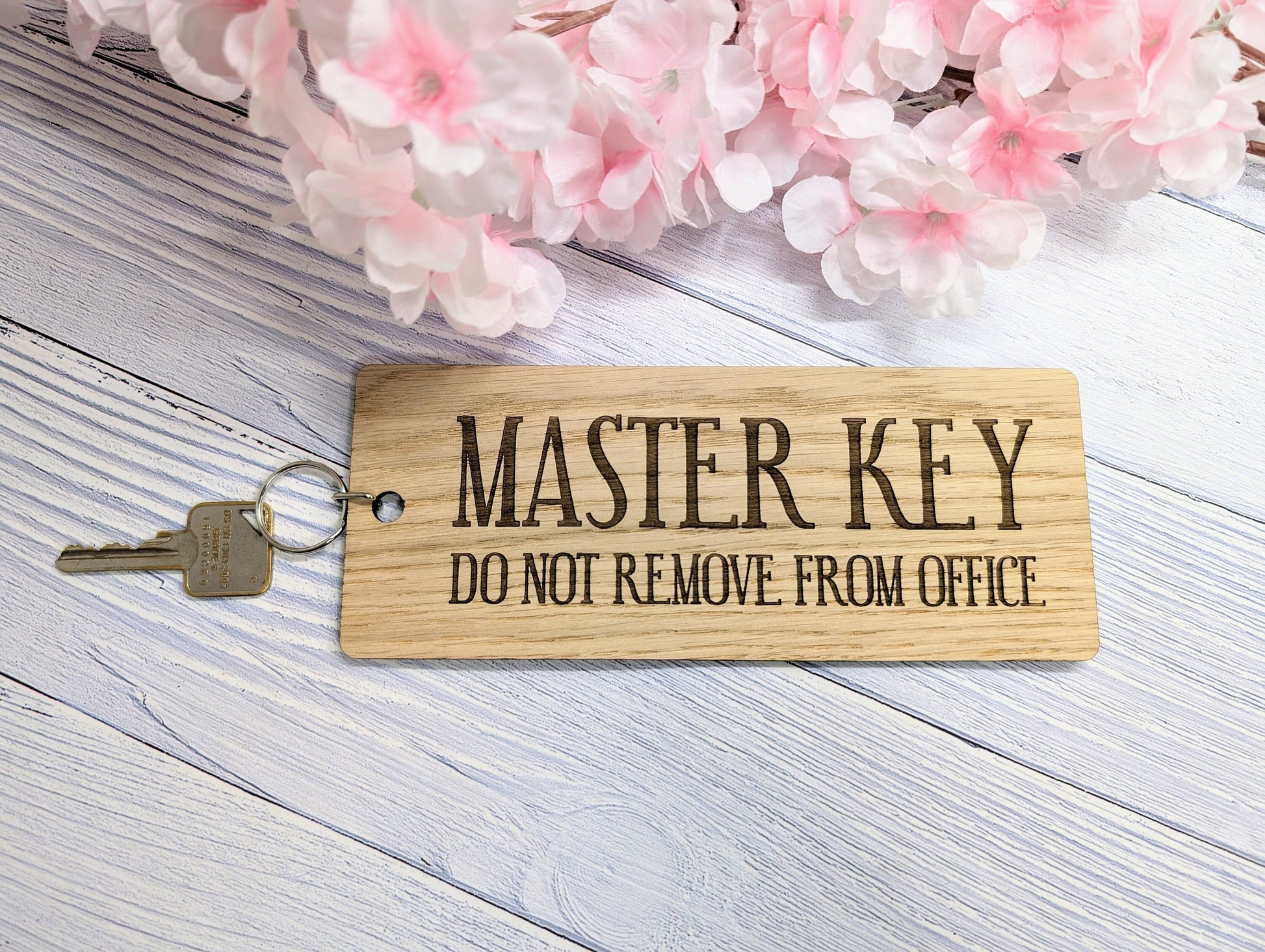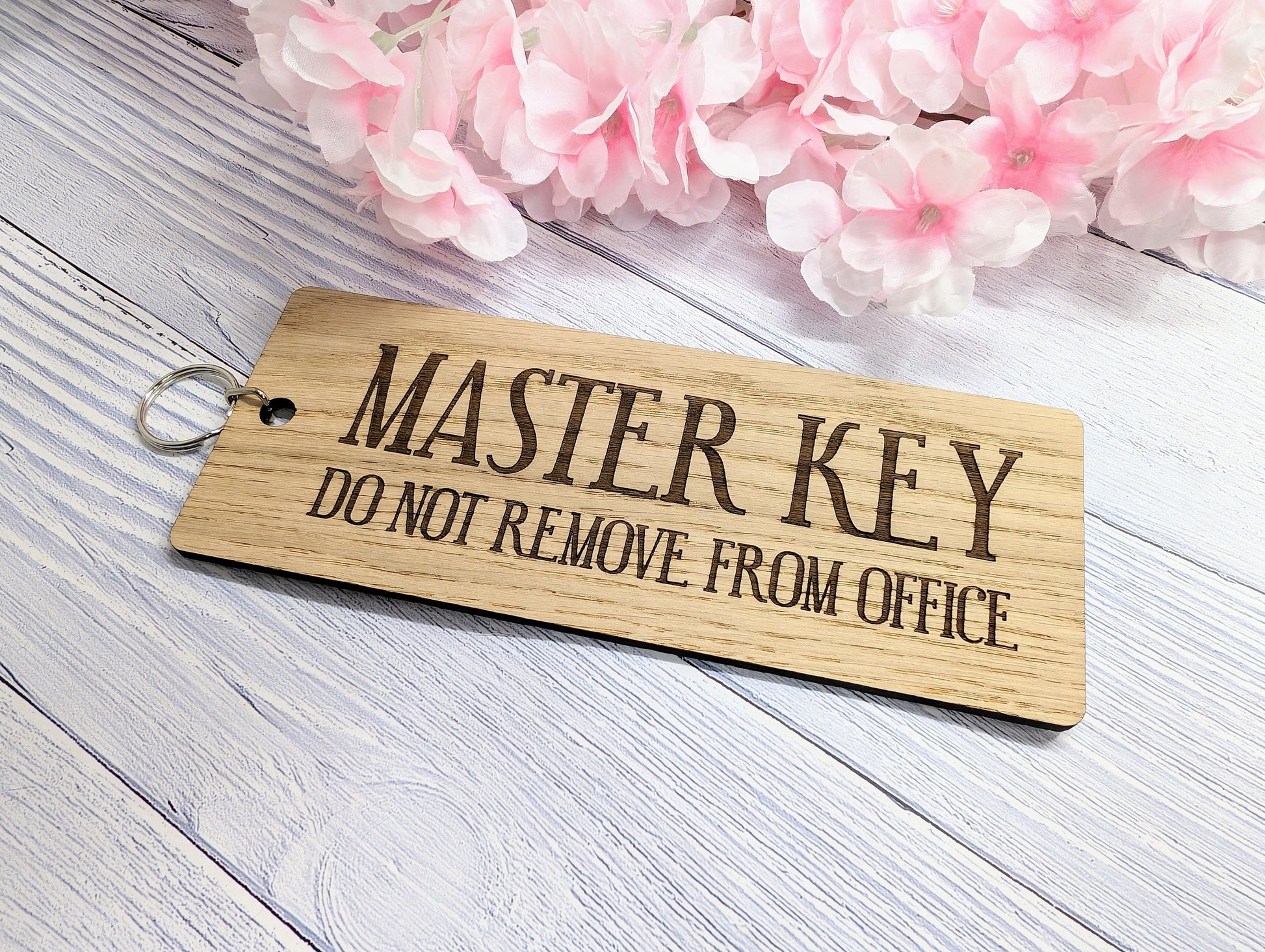 Extra-Large Wooden Keyring 'Master Key - Do Not Remove From Office' - Ideal for Important Keys | Handcrafted in Wales, Eco-Friendly Oak