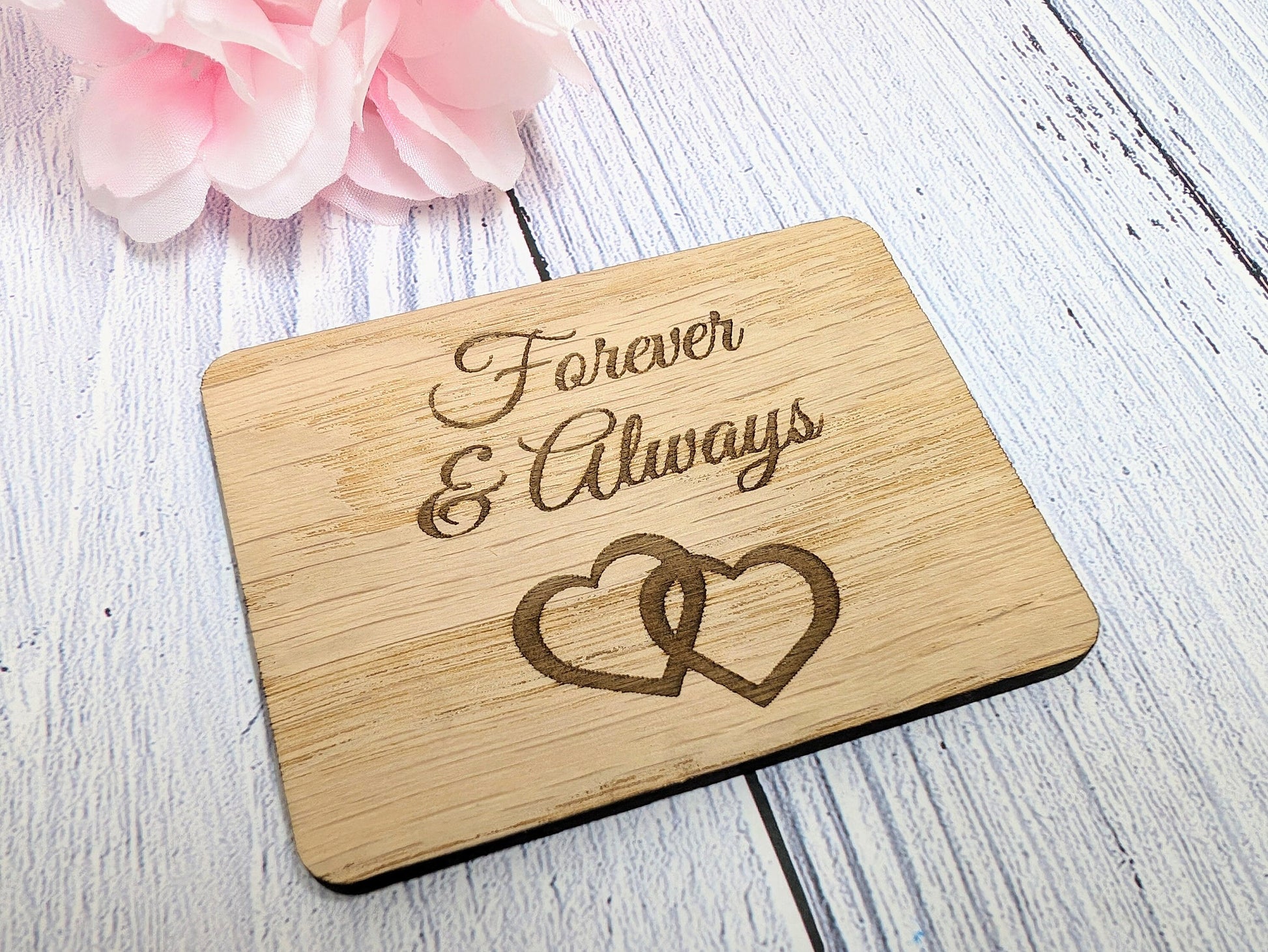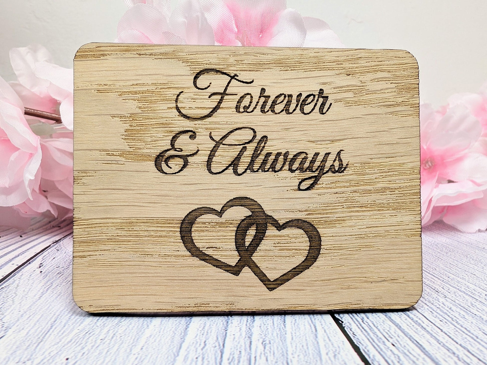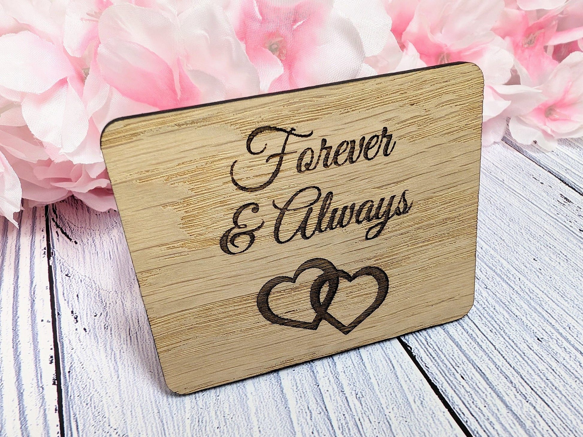 Forever & Always - Wooden Fridge Magnet with Interlocking Hearts - Romantic Gift