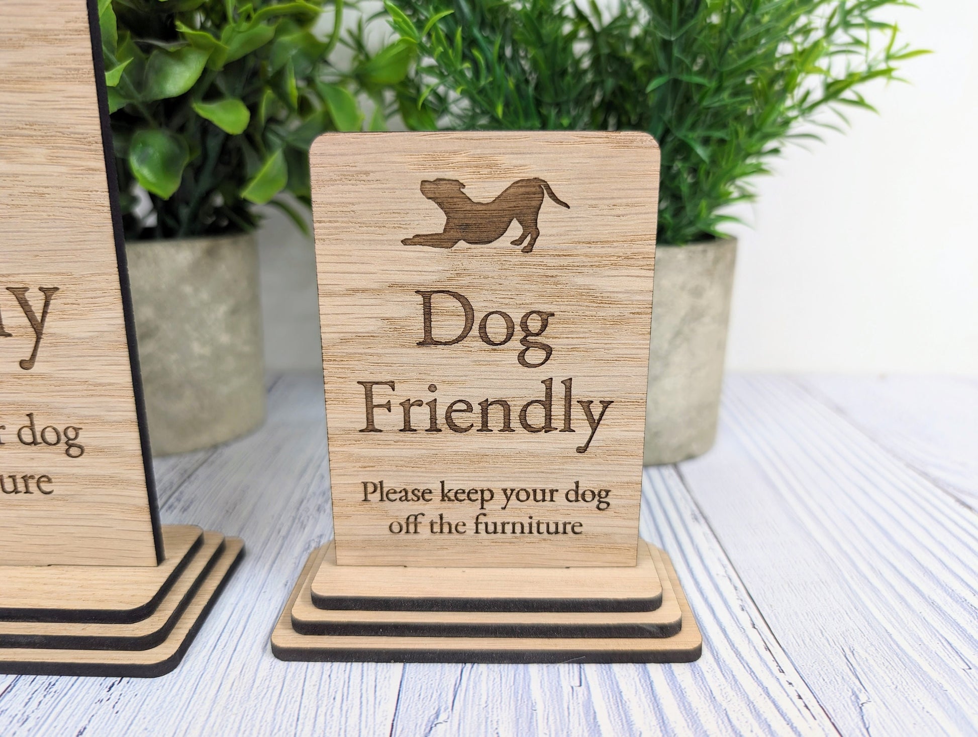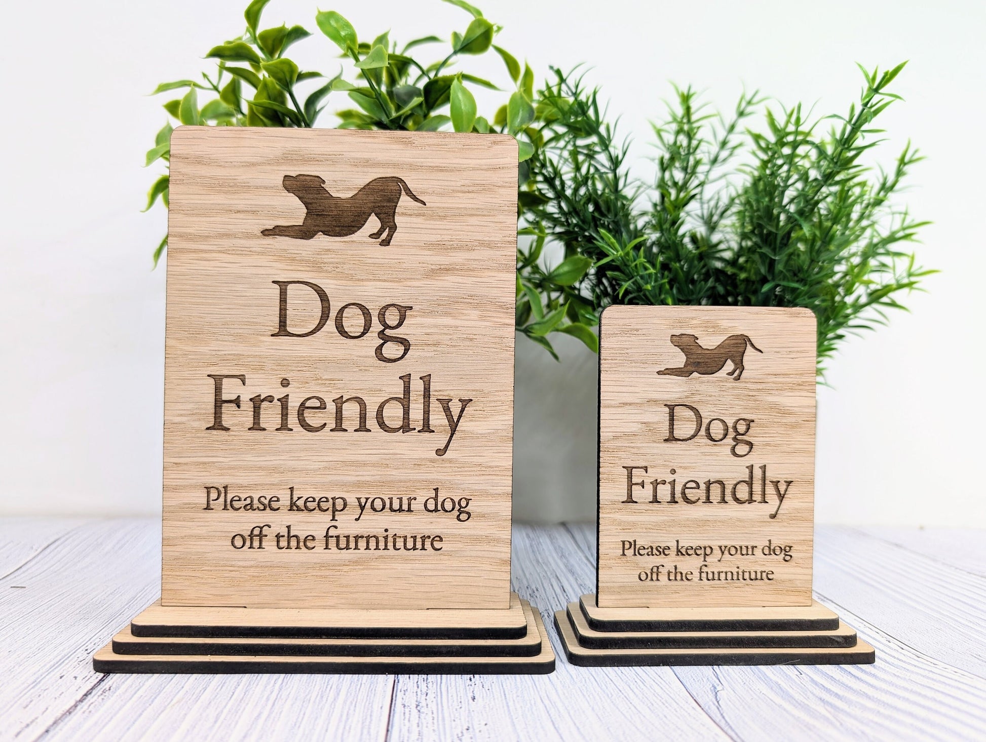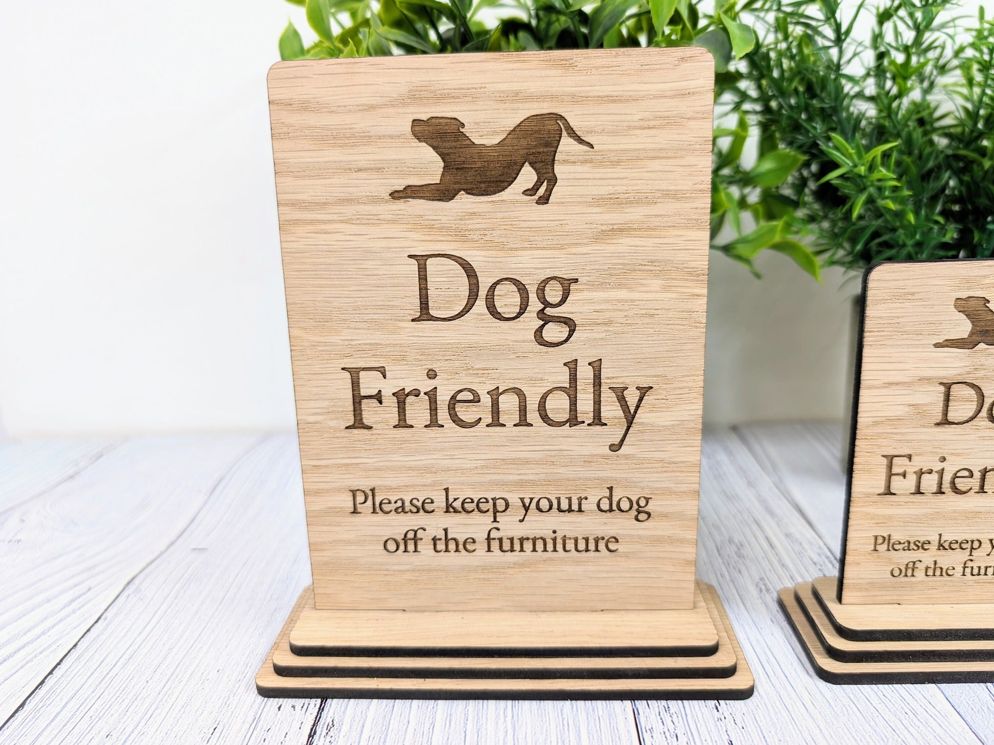 Freestanding "Please Keep Your Dog Off The Furniture" Wooden Table Sign, Oak Finish, Ideal for Homes, AirBnBs & Rental Properties