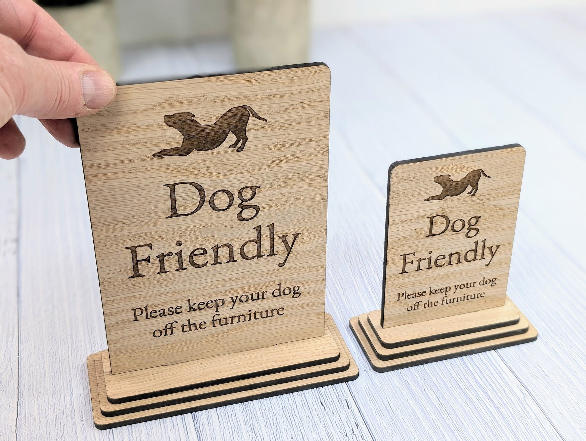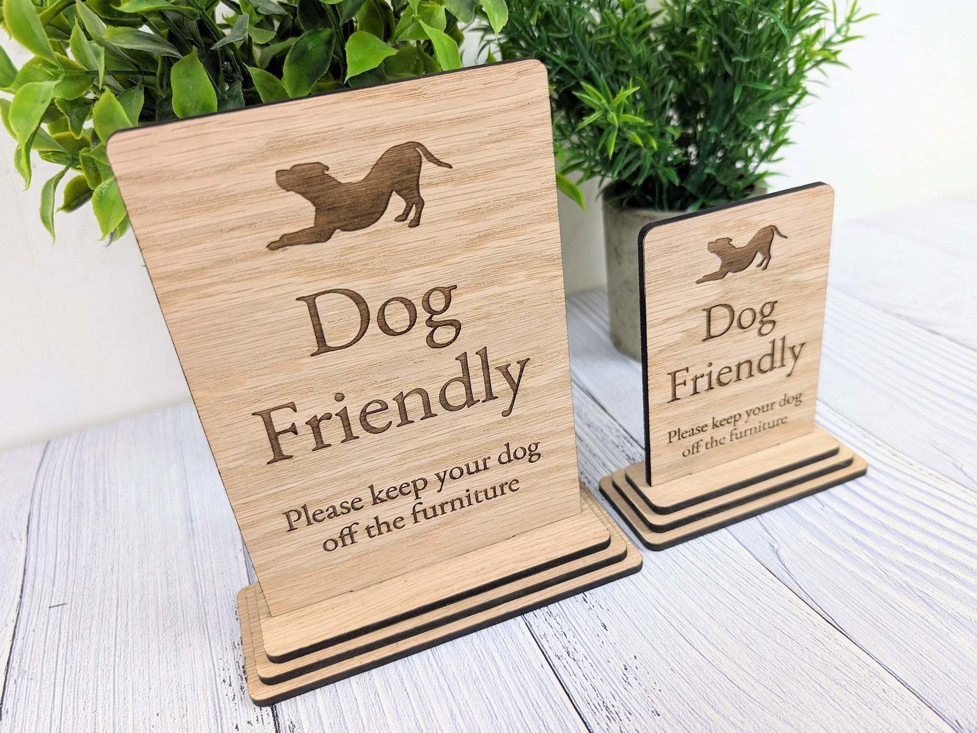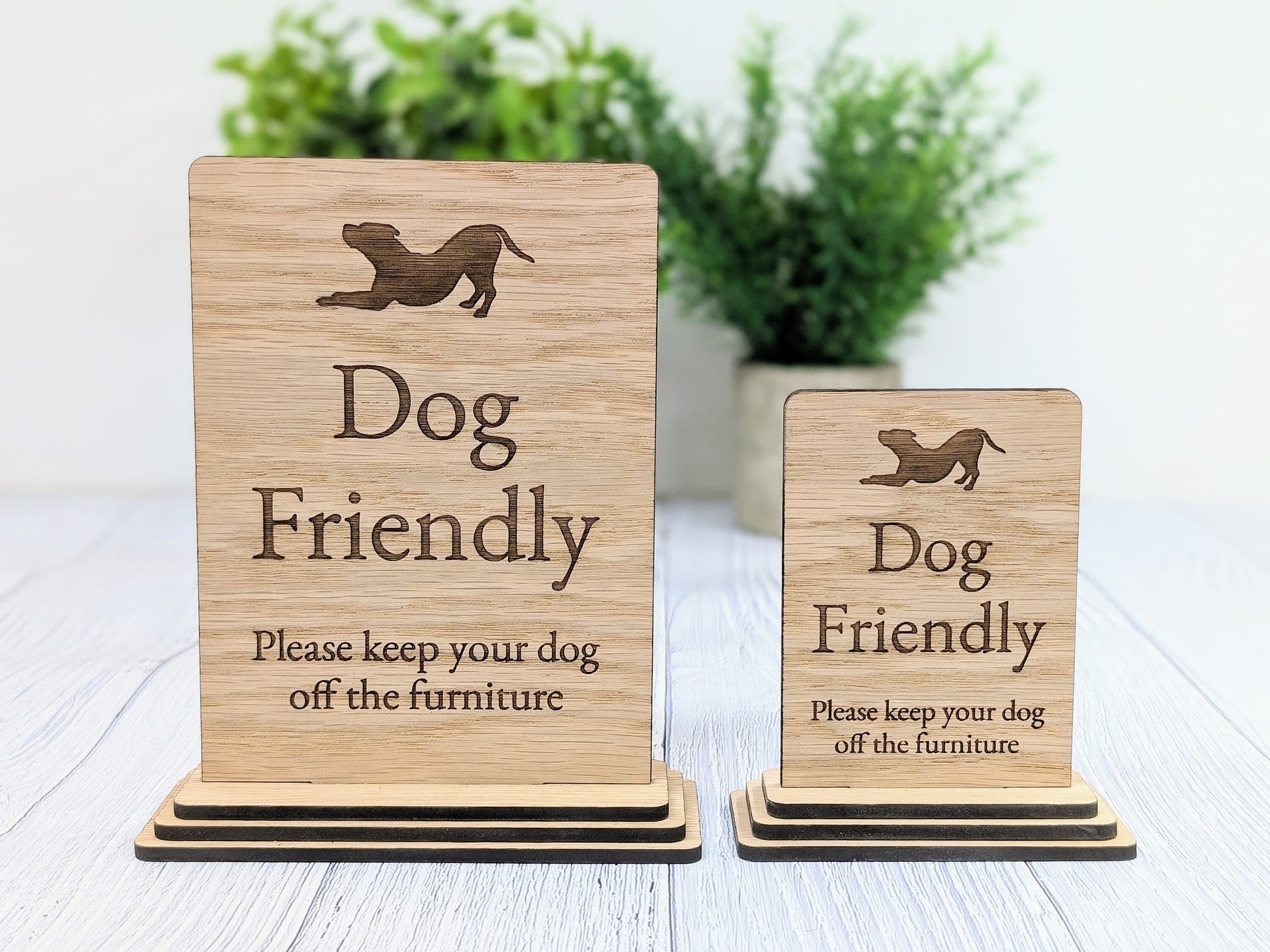 Freestanding "Please Keep Your Dog Off The Furniture" Wooden Table Sign, Oak Finish, Ideal for Homes, AirBnBs & Rental Properties