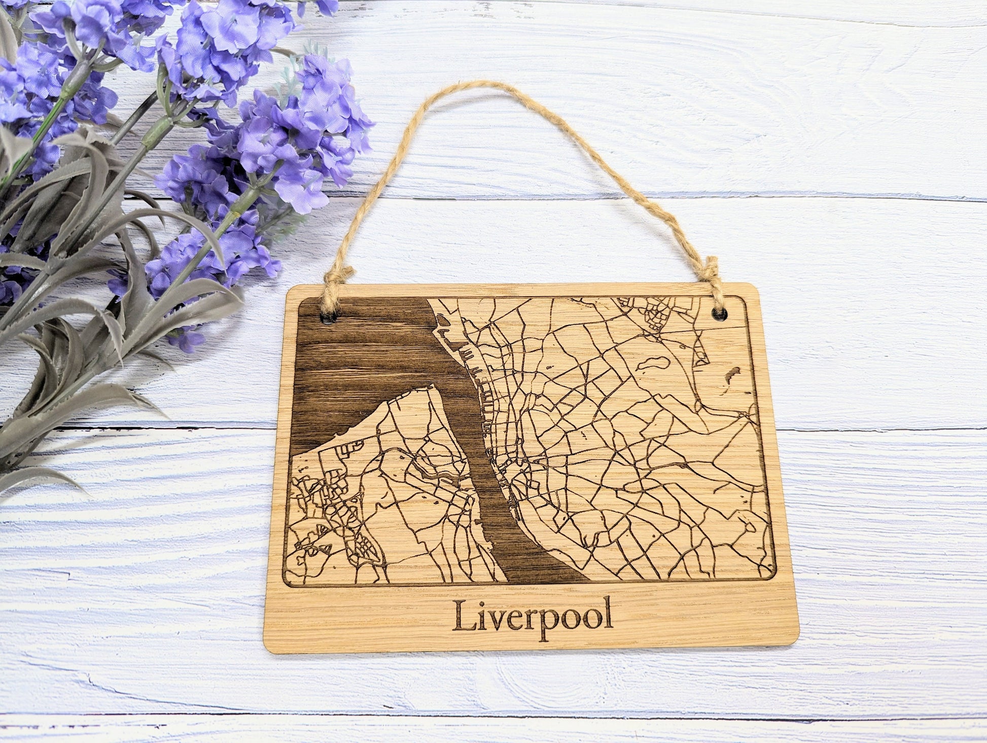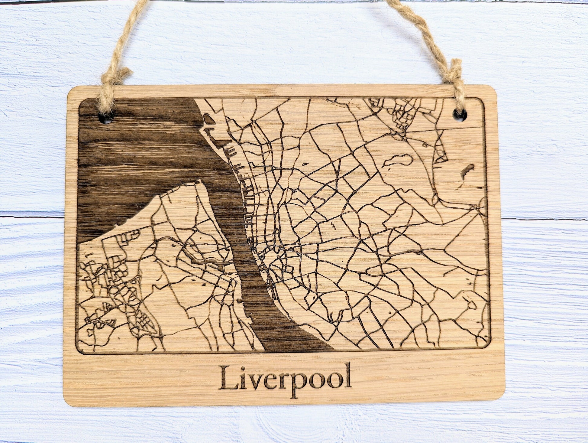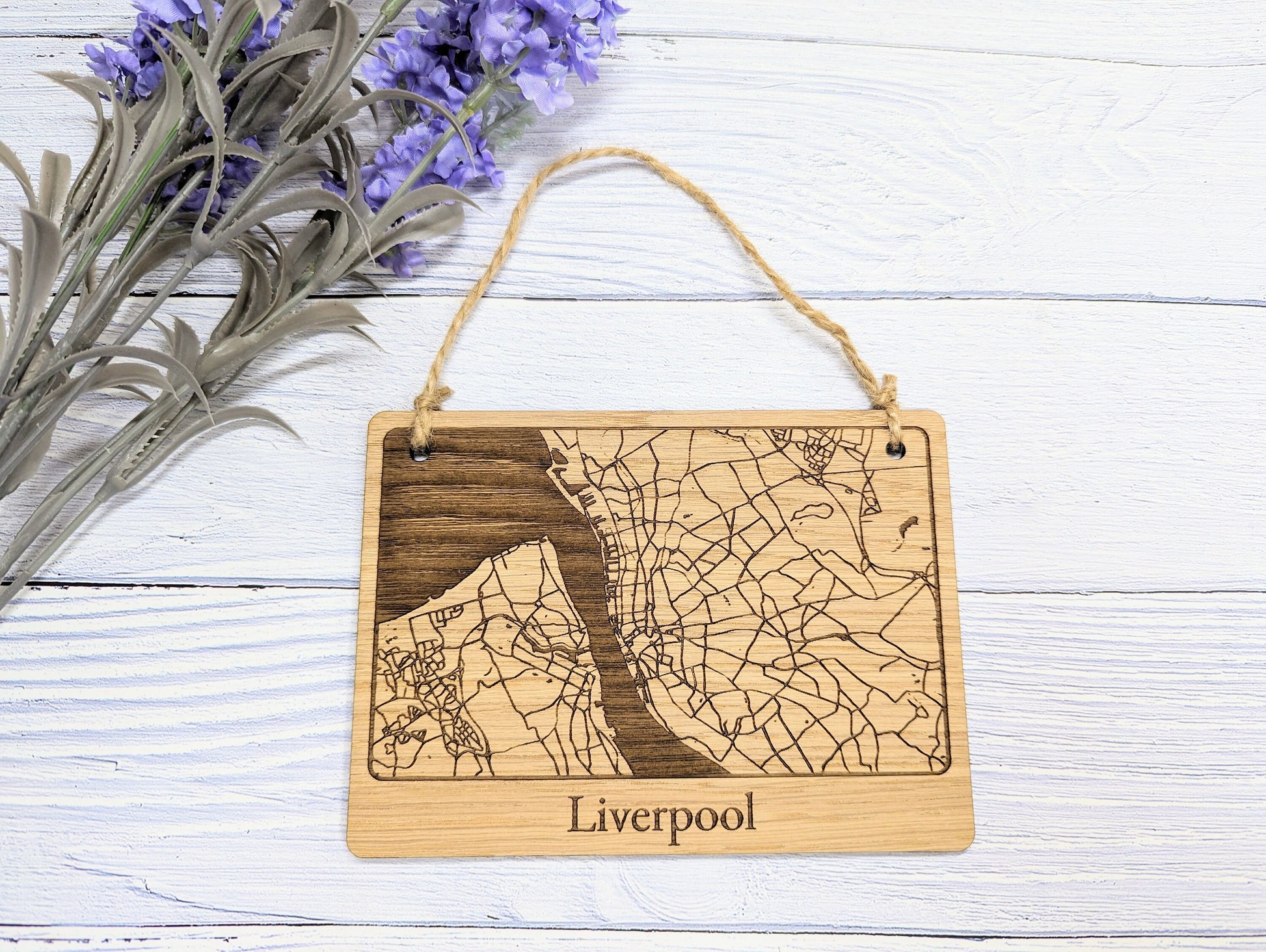 Handcrafted Wooden Map Wall Art of Liverpool - Unique Home Decor or Thoughtful Gift - 4 Sizes Available - Customisable