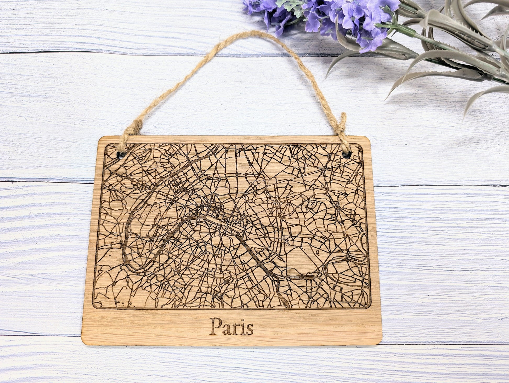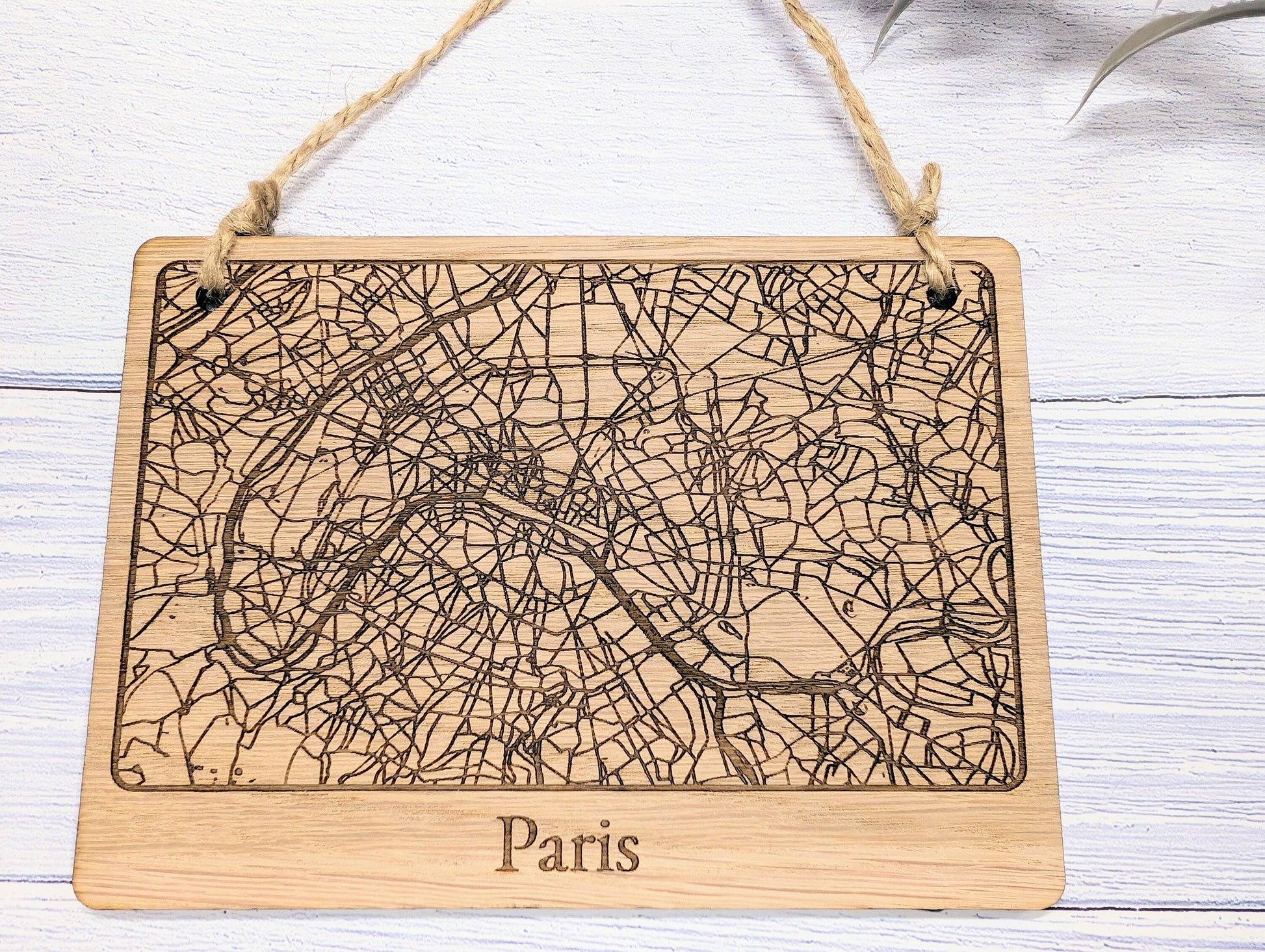 🗺 Handcrafted Wooden Map Wall Art of Paris, UK