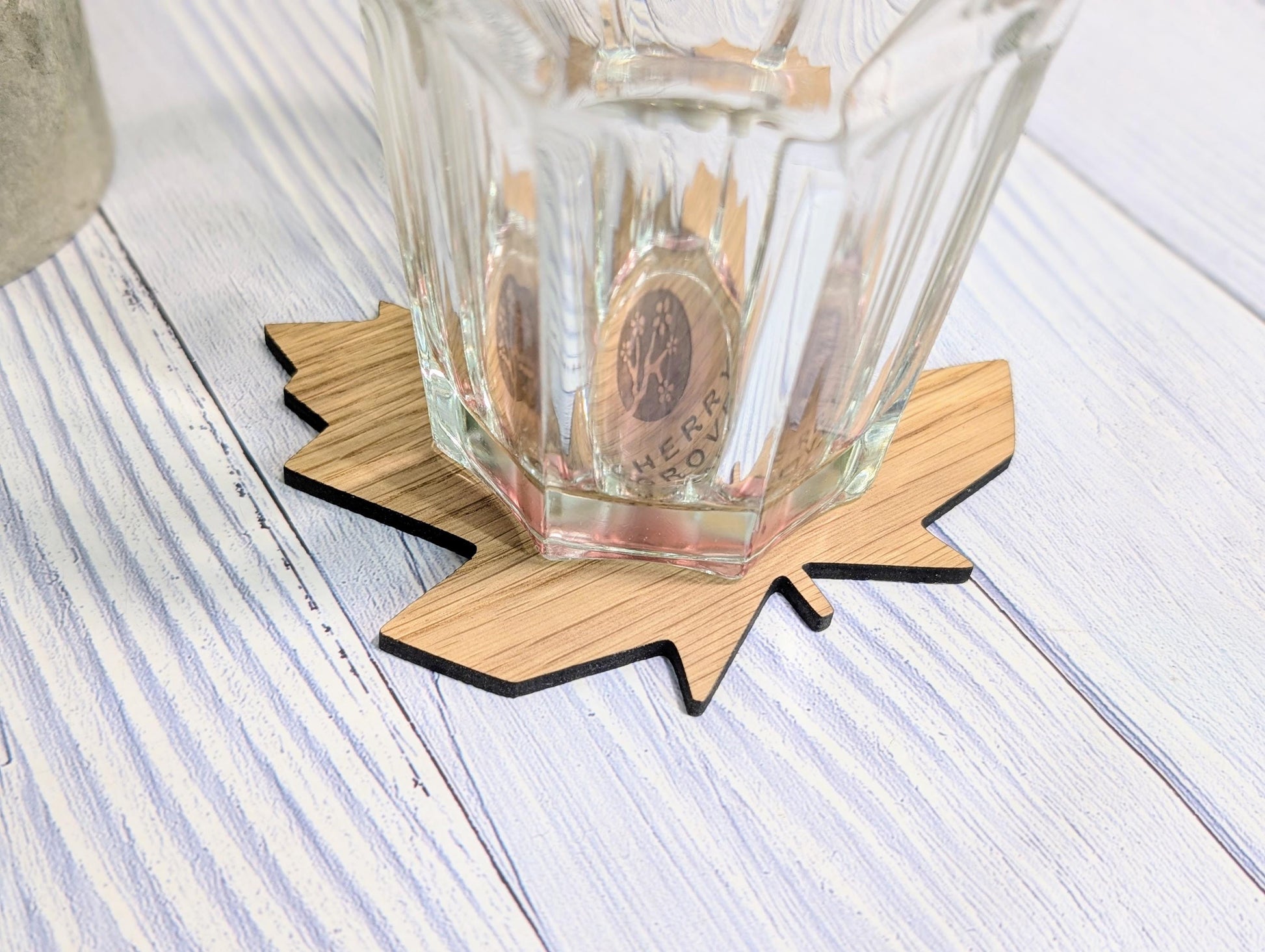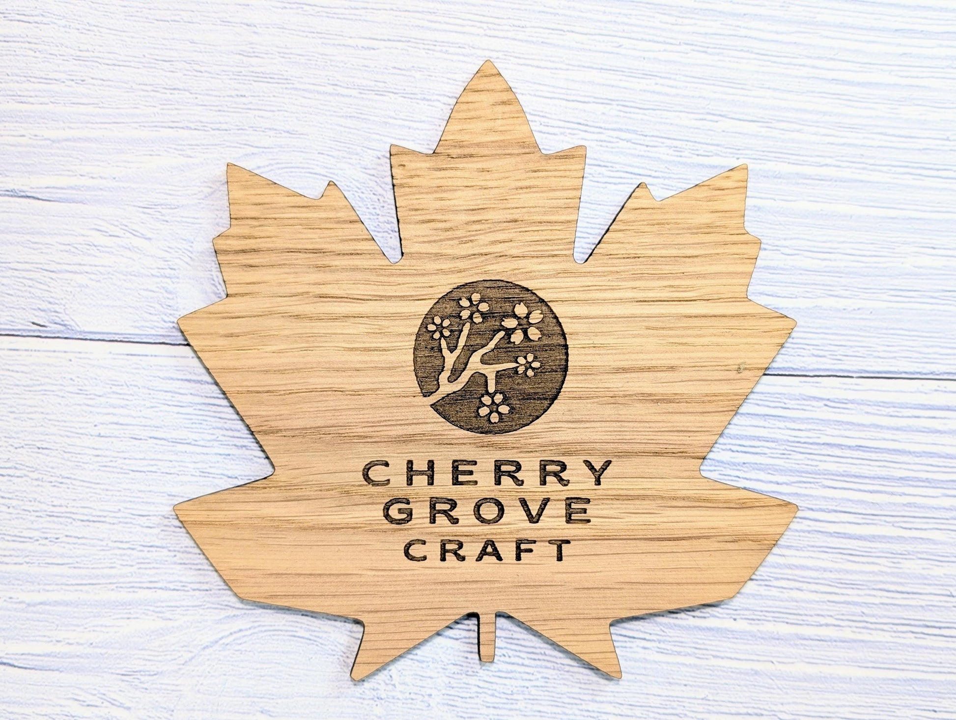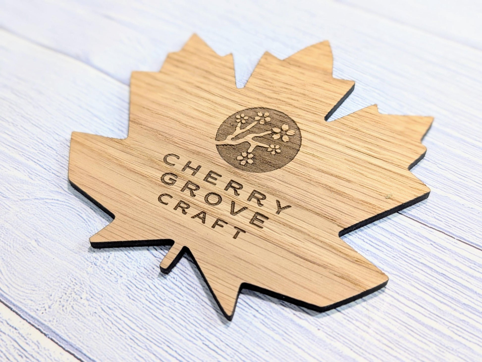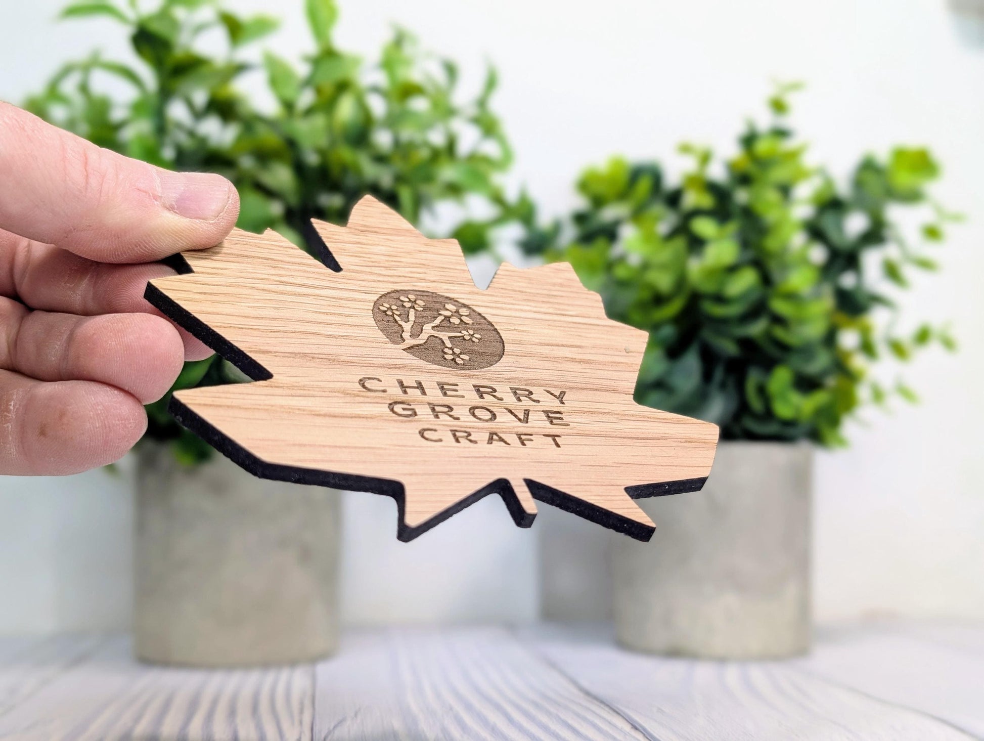 Leaf Shaped Wooden Logo Coasters - Personalised – Eco-Friendly Gift, Custom Branded – Bespoke Sustainable Craft, 115mm Diameter, Oak Wood