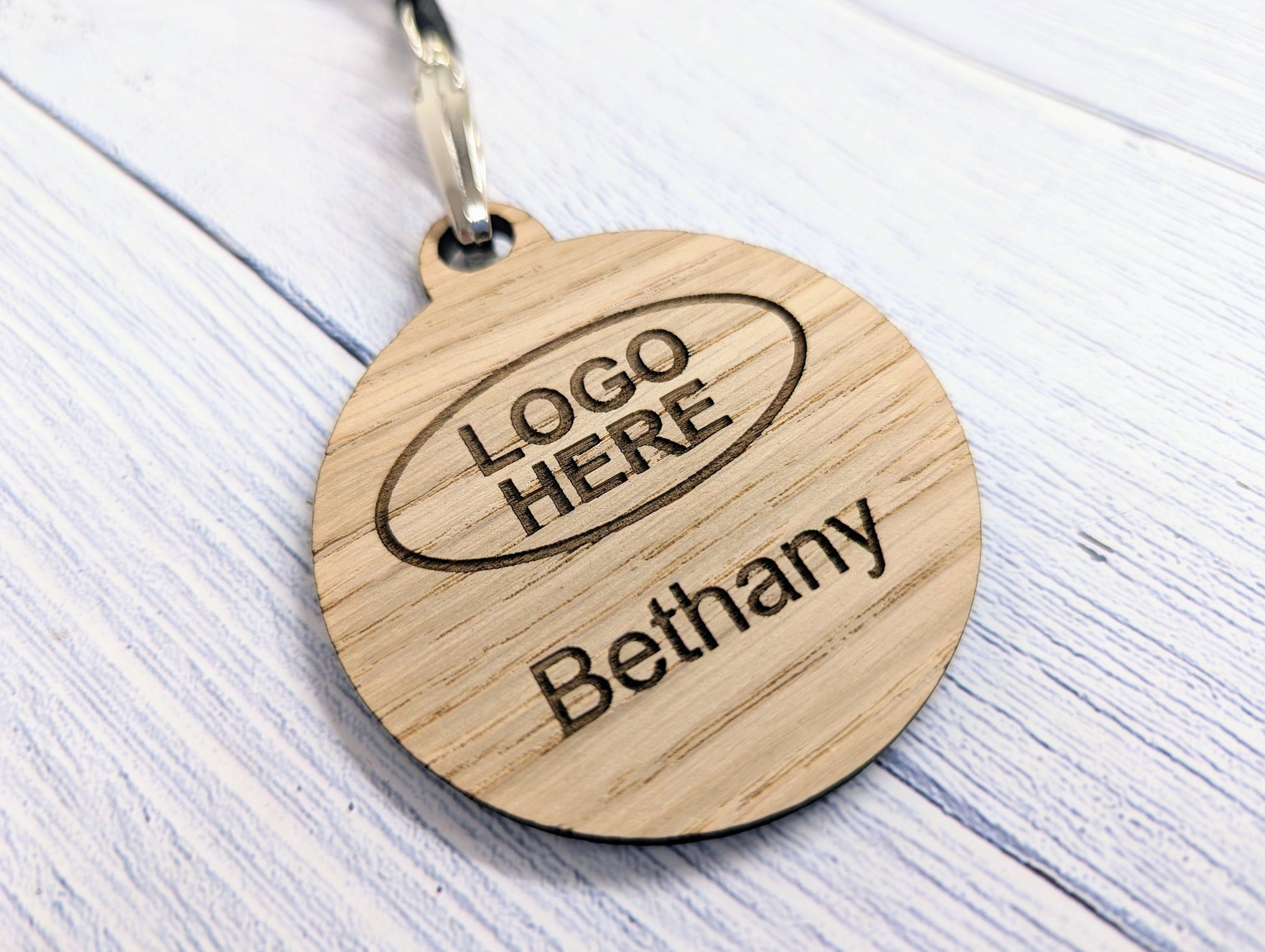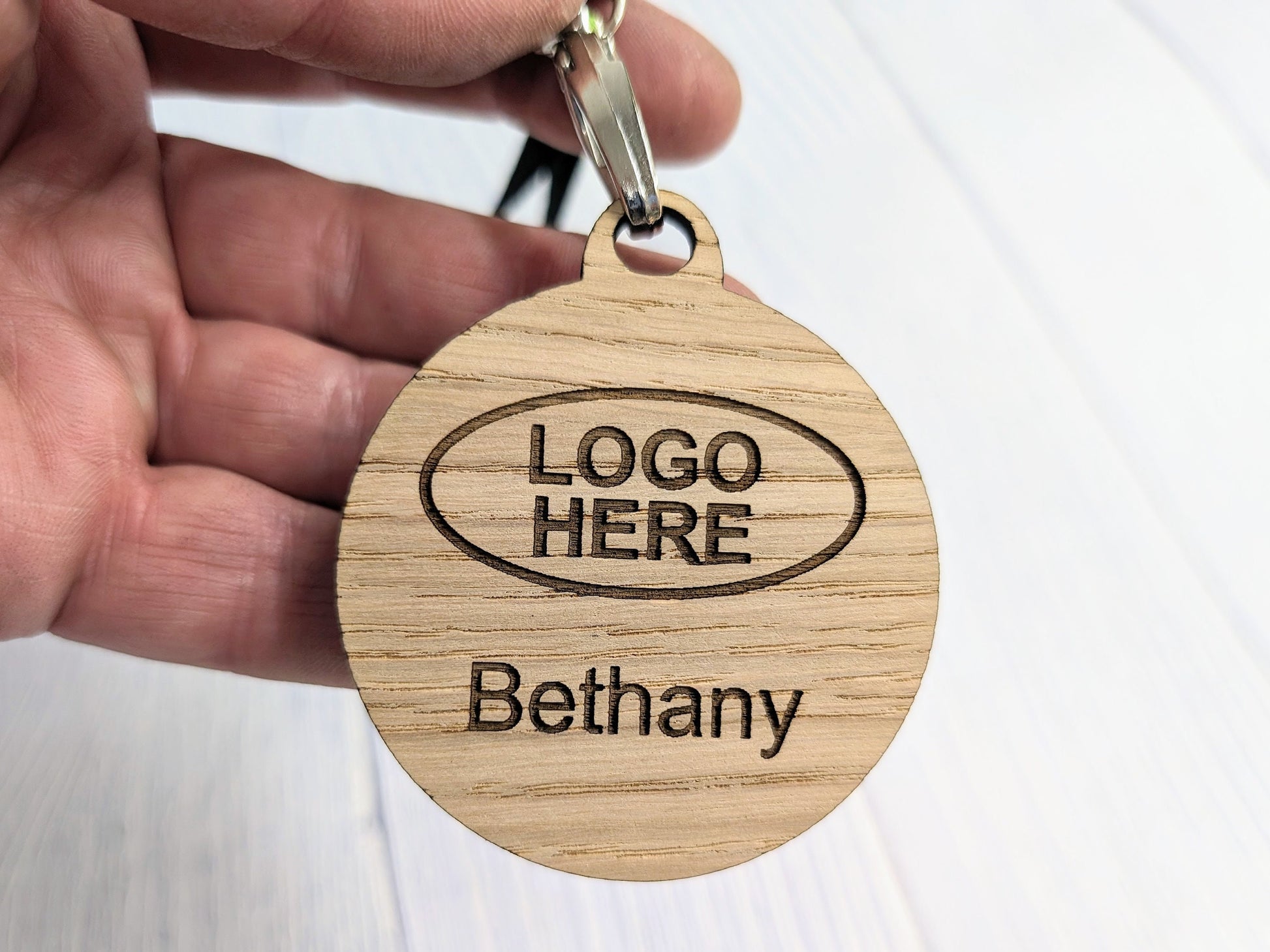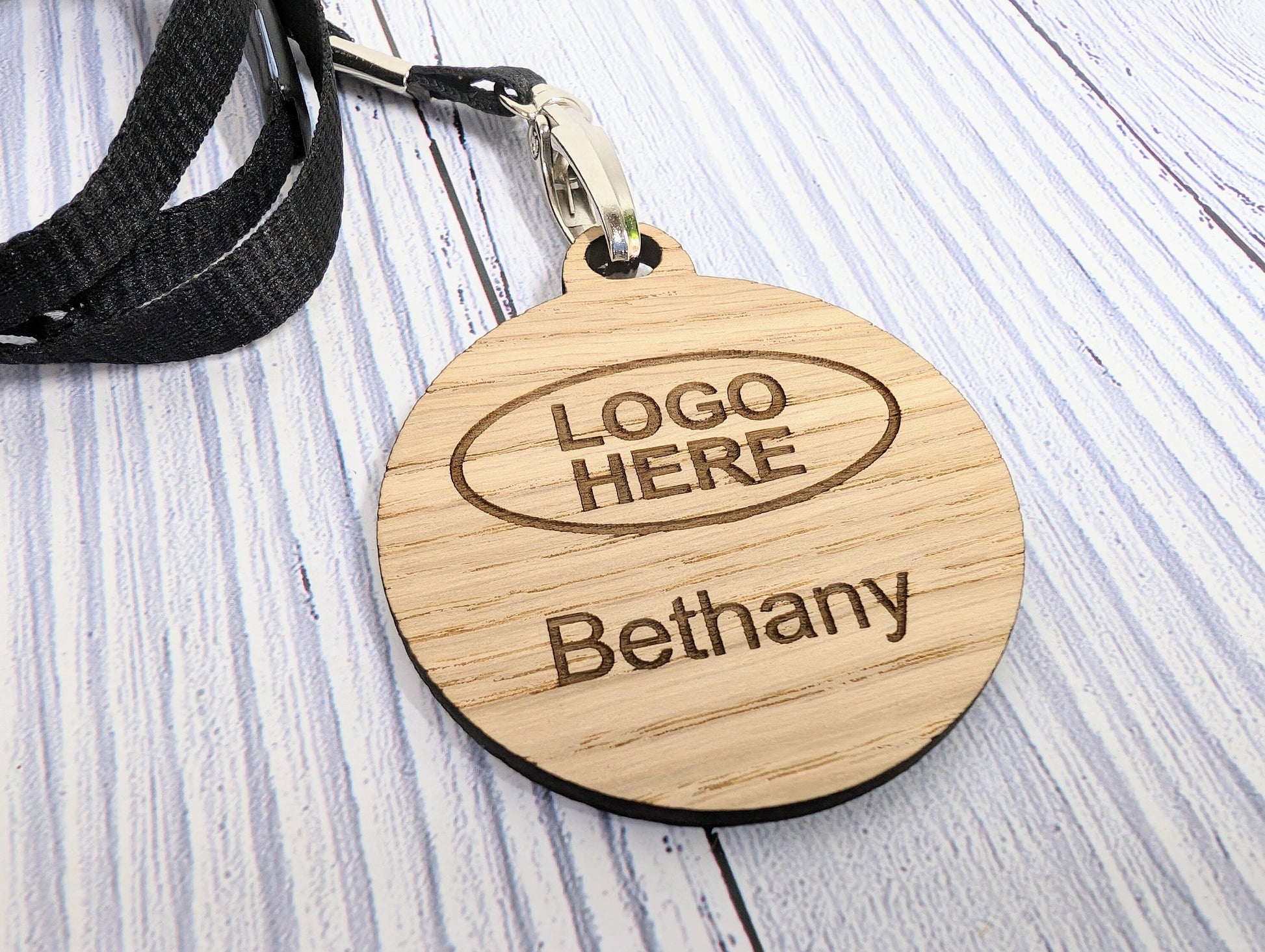 Name Badges, Eco-Friendly Round Staff ID Tags with Lanyards - Customisable with Logo, & Text, 60mm x 70mm, Bulk Discounts, Personalised Tags