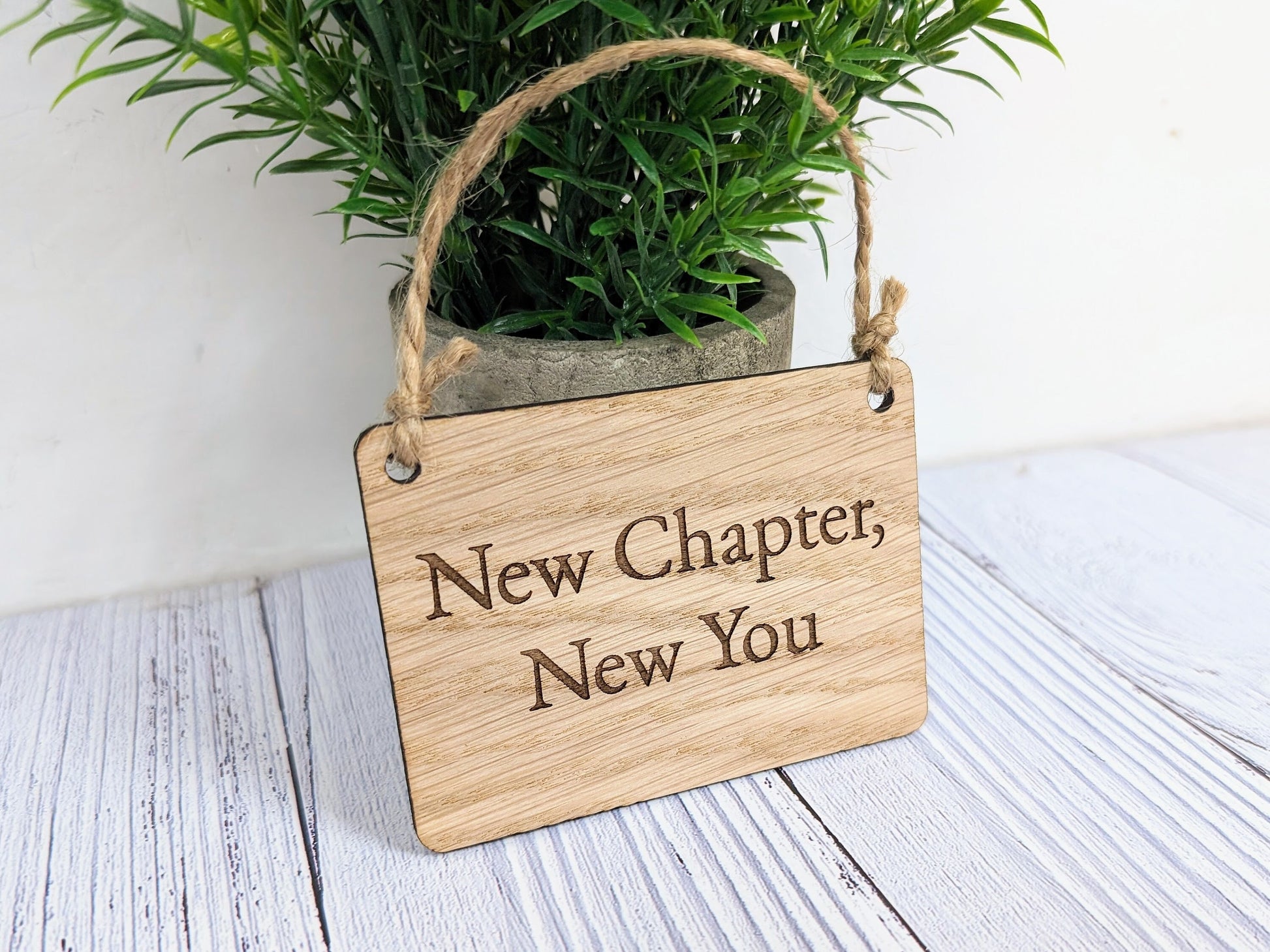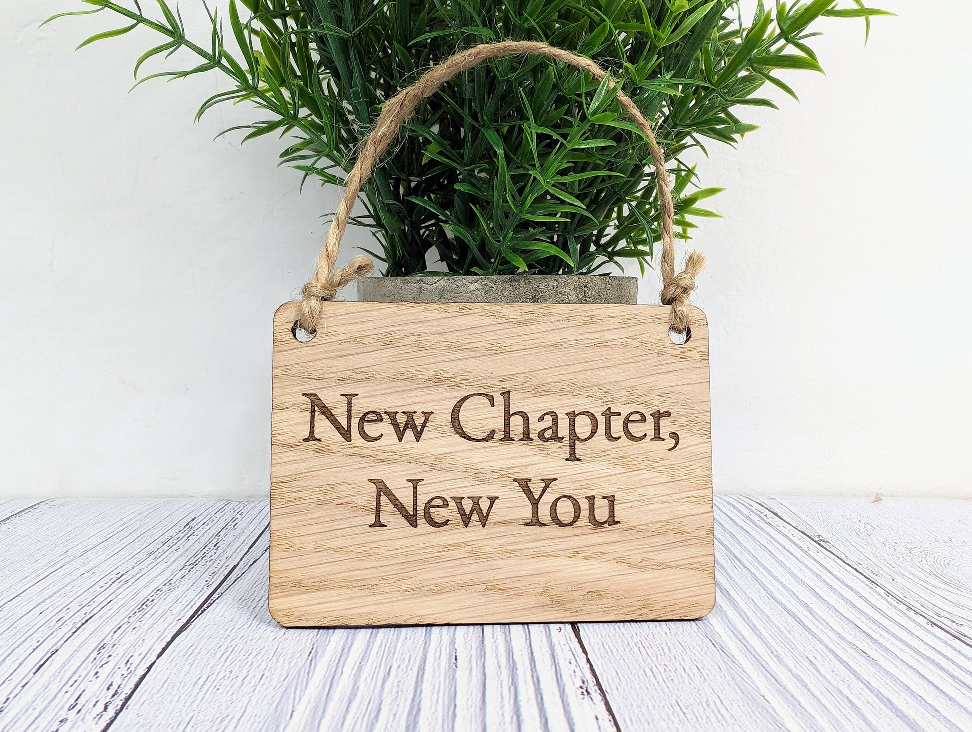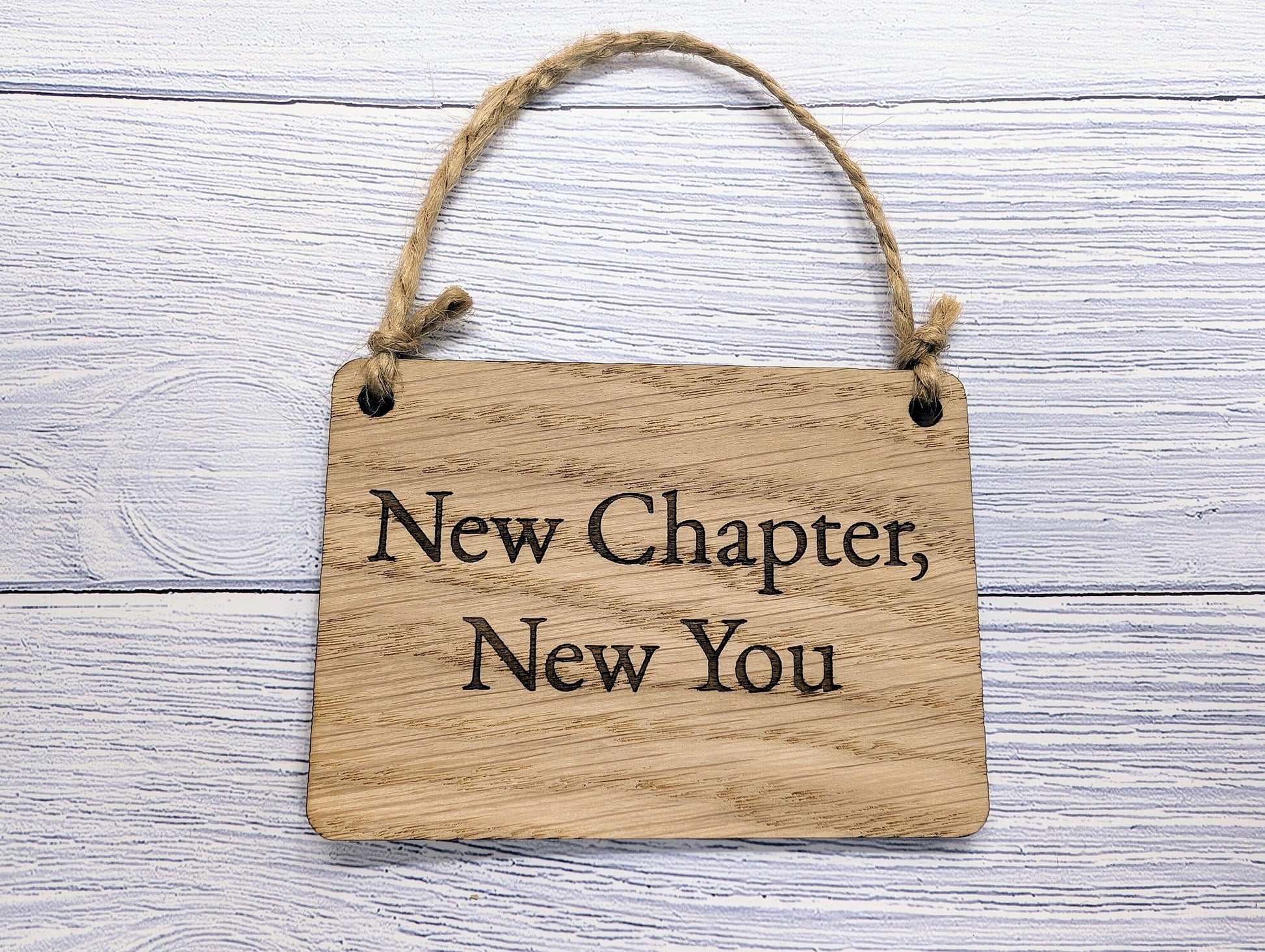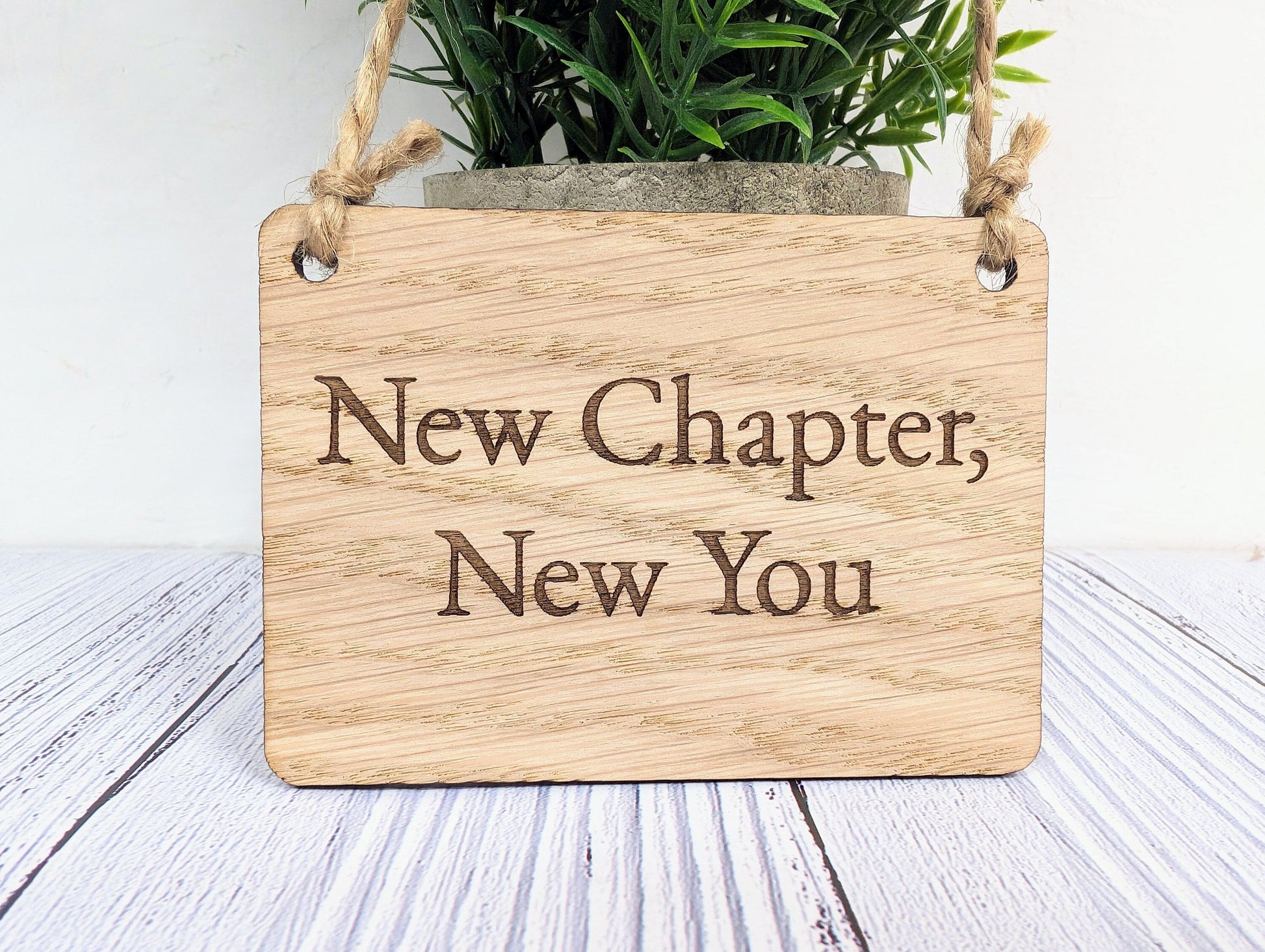 New Chapter, New You Oak Sign - Customisable, Uplifting Life Transition Decor