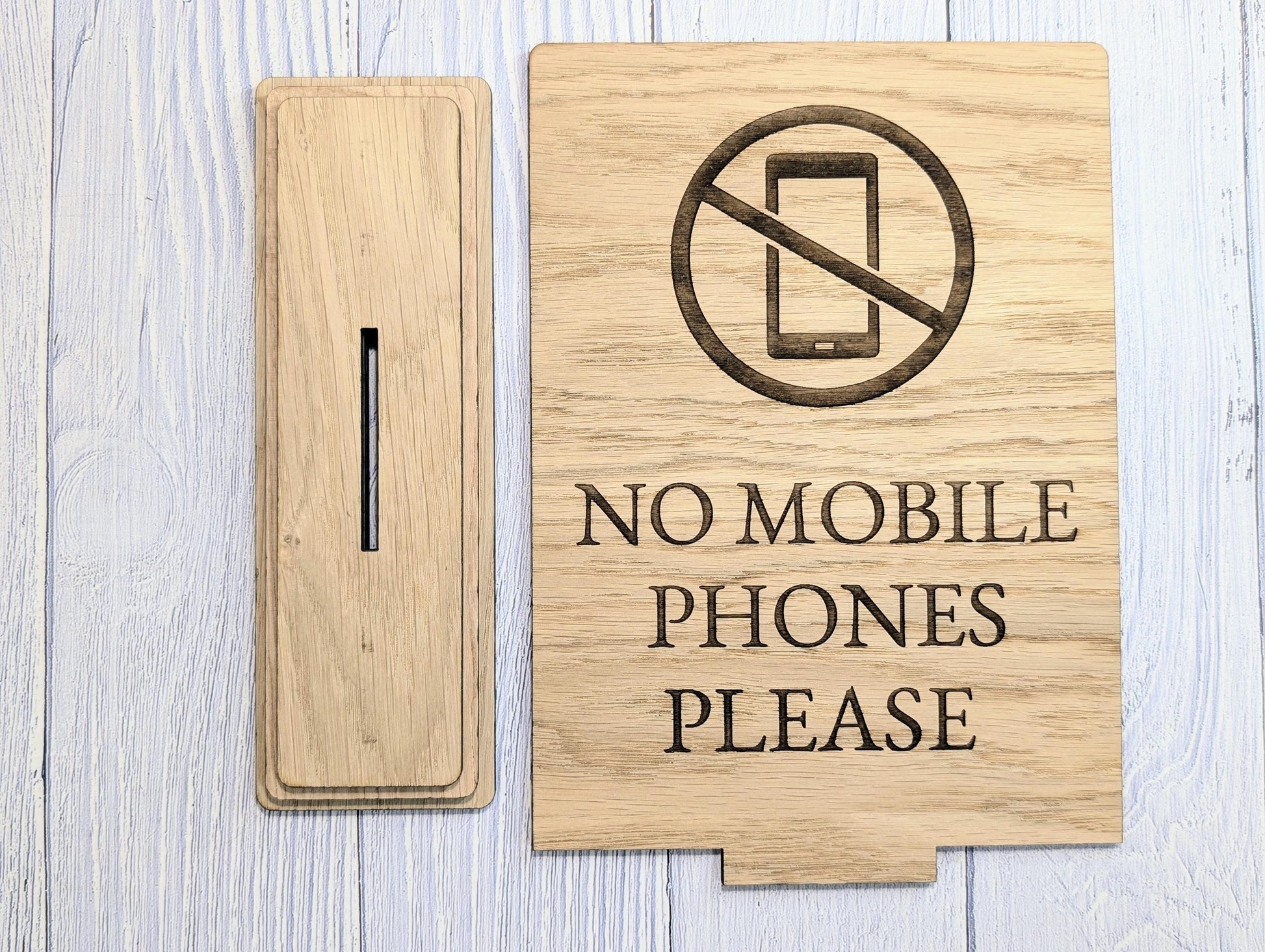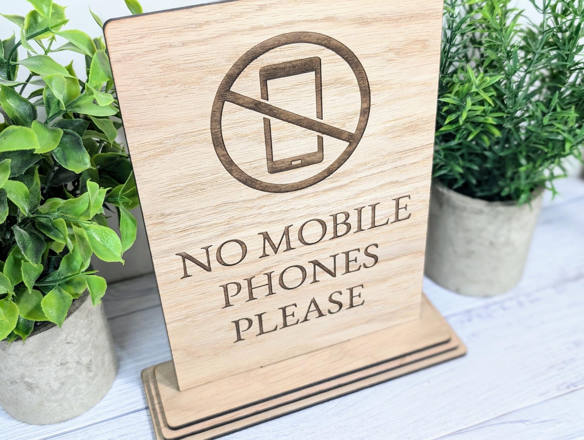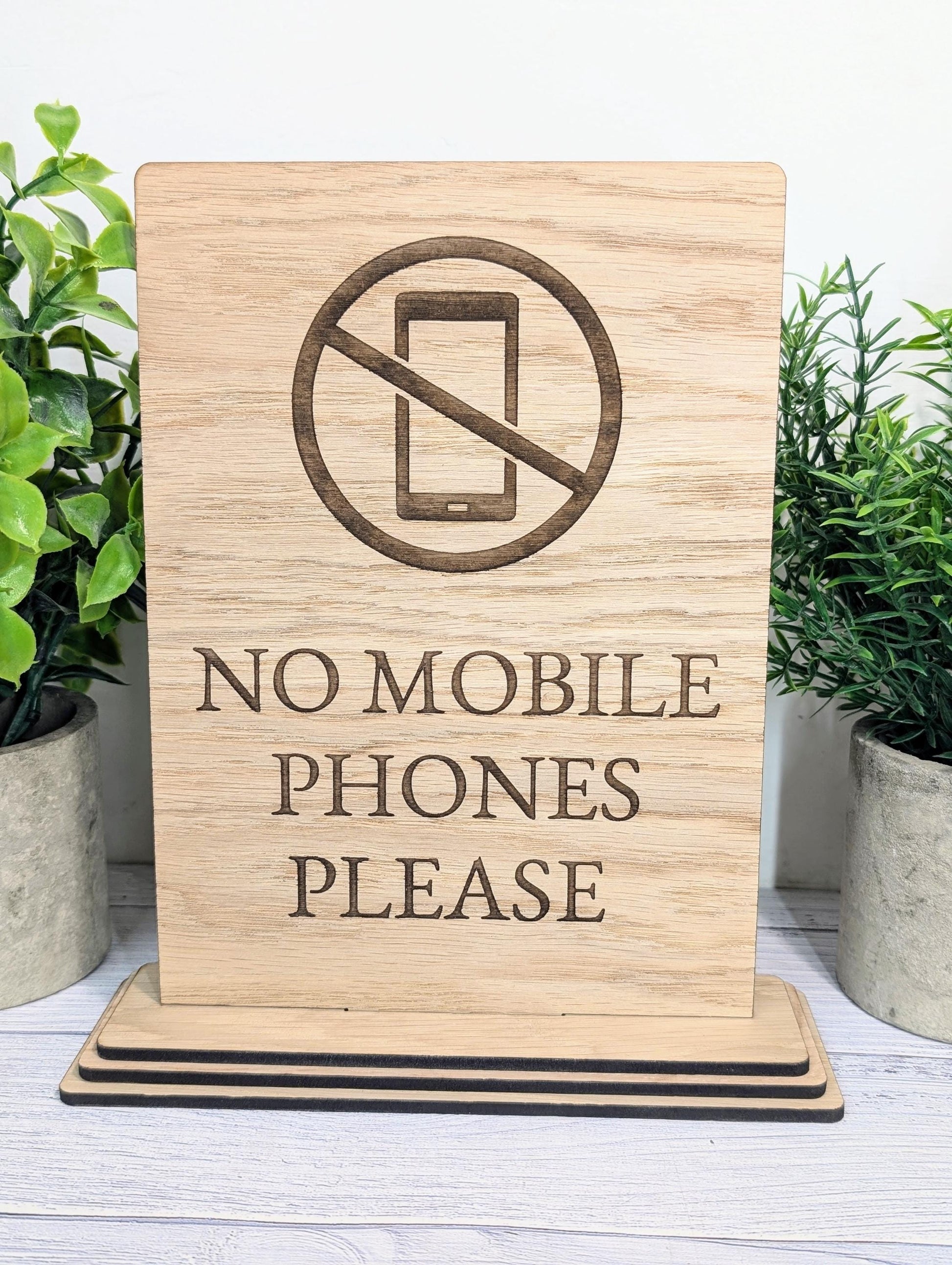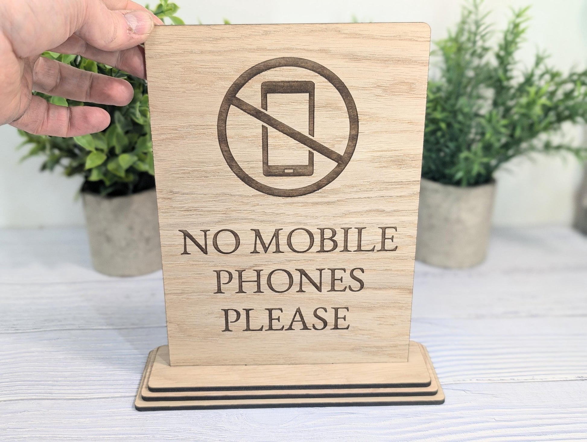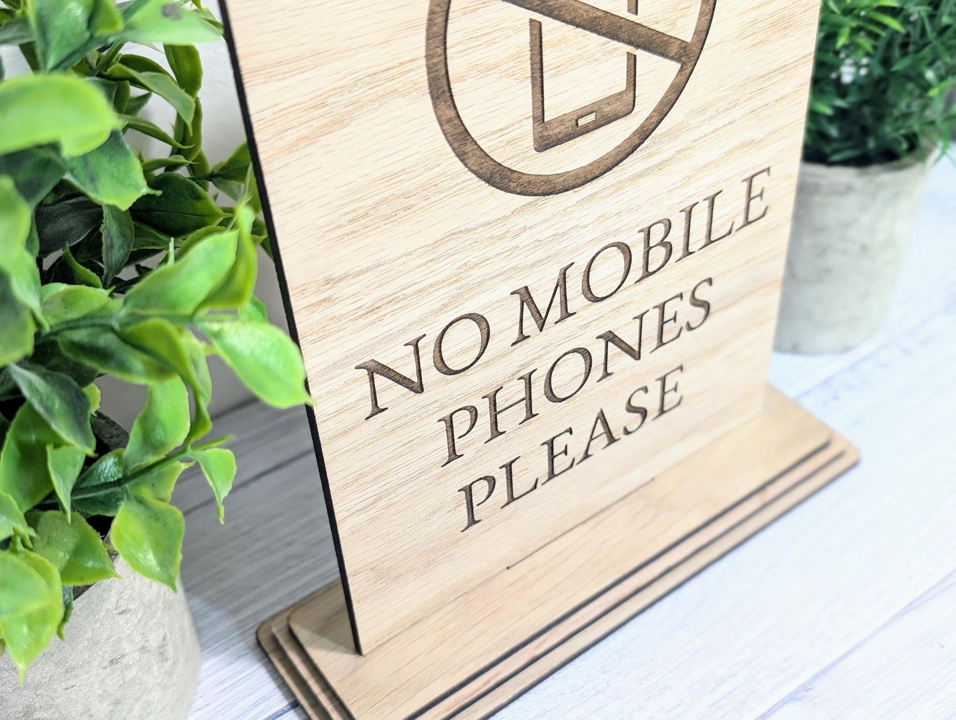 No Mobile Phones Please | XL Size | Stylish and Professional | Custom Wooden Business Table Sign | Eco-Friendly