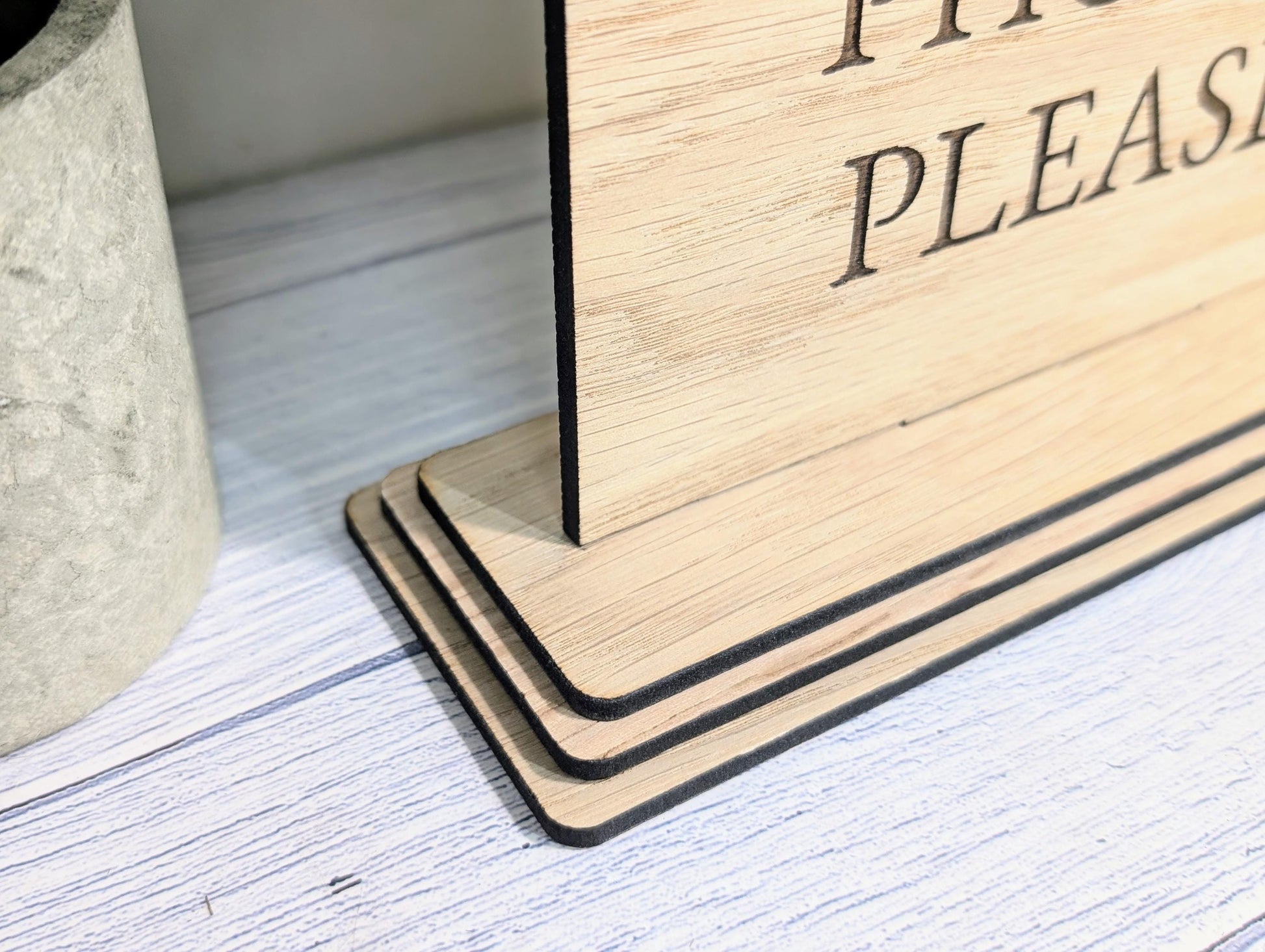 Maintain a professional and distraction-free environment with our Custom Wooden Business Table Sign that reads "No Mobile Phones Please." This XL-sized sign is perfect for meeting rooms, offices, or any space where you want to encourage a focus on the task at hand. Its elegant design adds a touch of sophistication to any setting..
