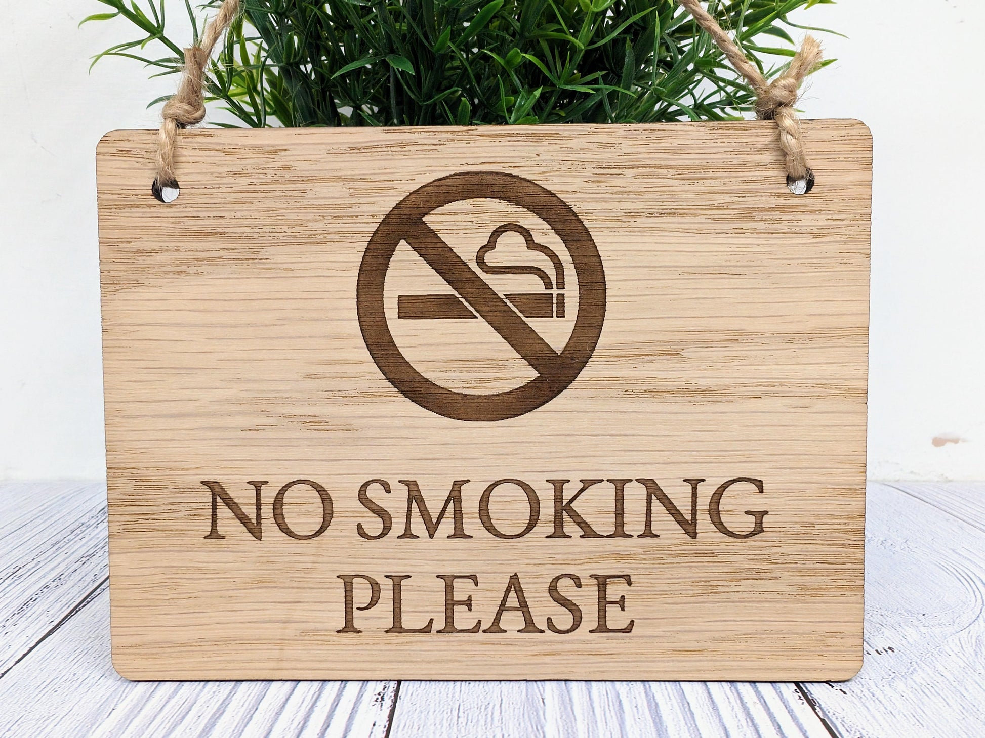 No Smoking Please, Wooden Sign | Oak Veneer | Wall Decor | Business Signage | Handcrafted in the UK