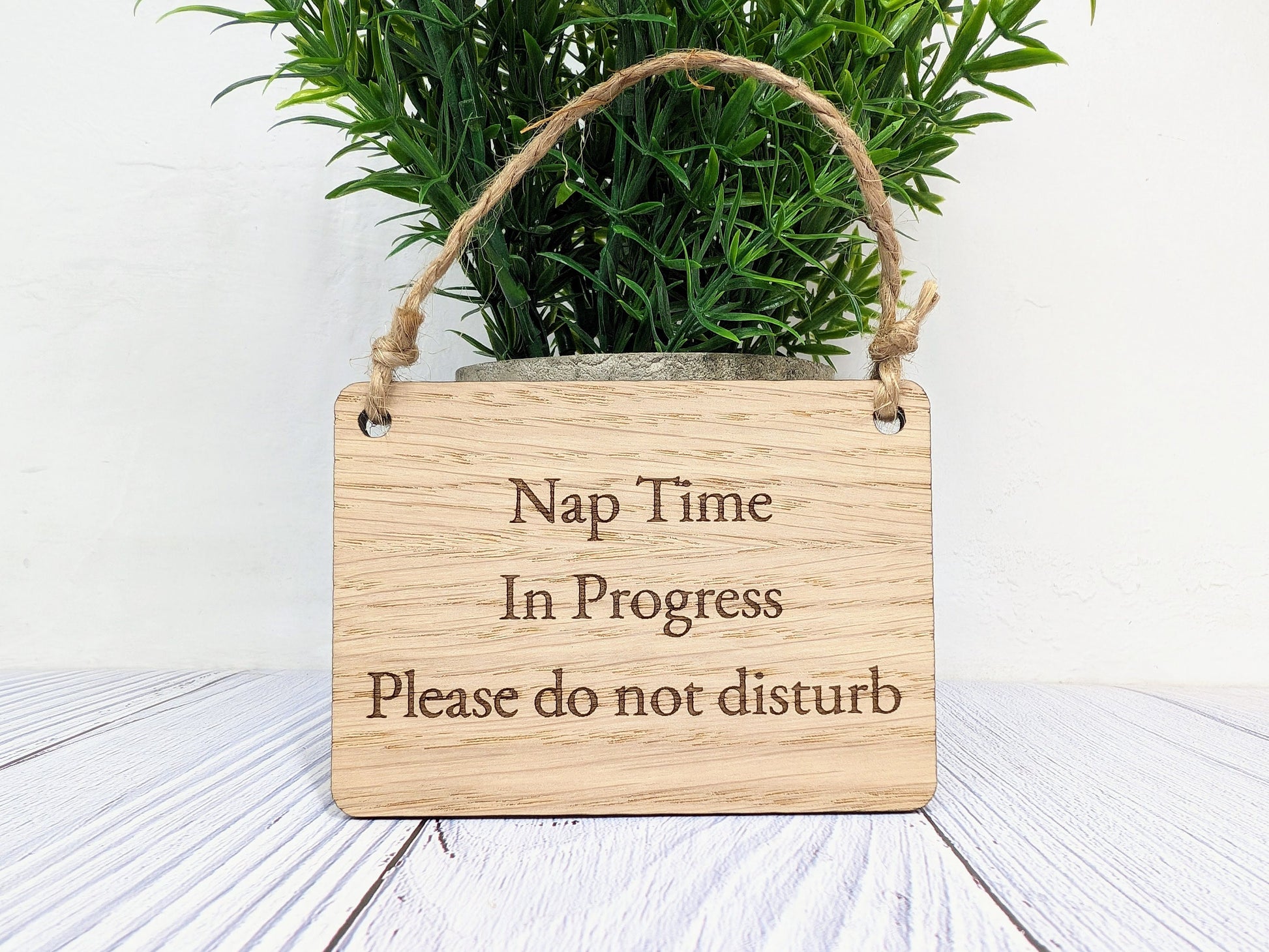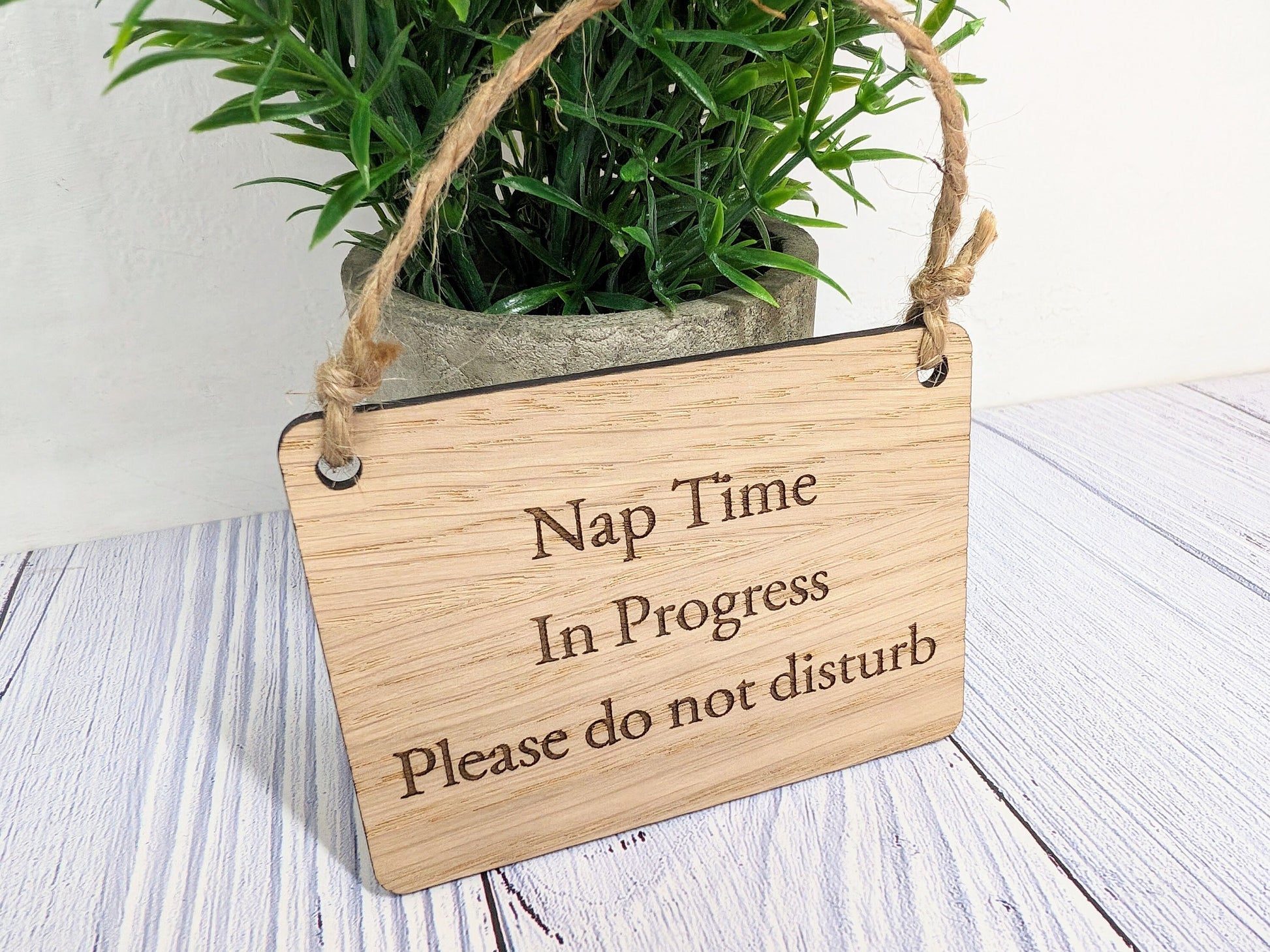 Personalised Nap Time in Progress - Oak Veneered Sign - Handcrafted Welsh Door Sign, Eco-Friendly "Do Not Disturb