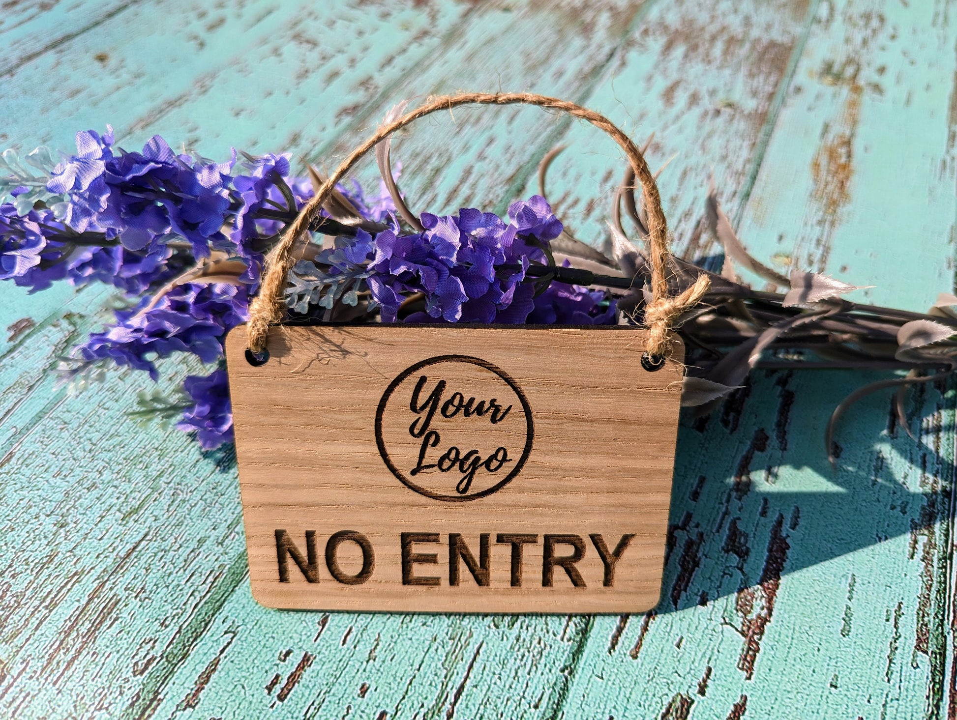 Create a distinct and customised statement with our Personalised NO ENTRY Hanging Sign. This versatile wooden sign is available in 4 convenient sizes and comes complete with two pre-drilled holes and jute string for easy hanging on doors, walls, or hooks.