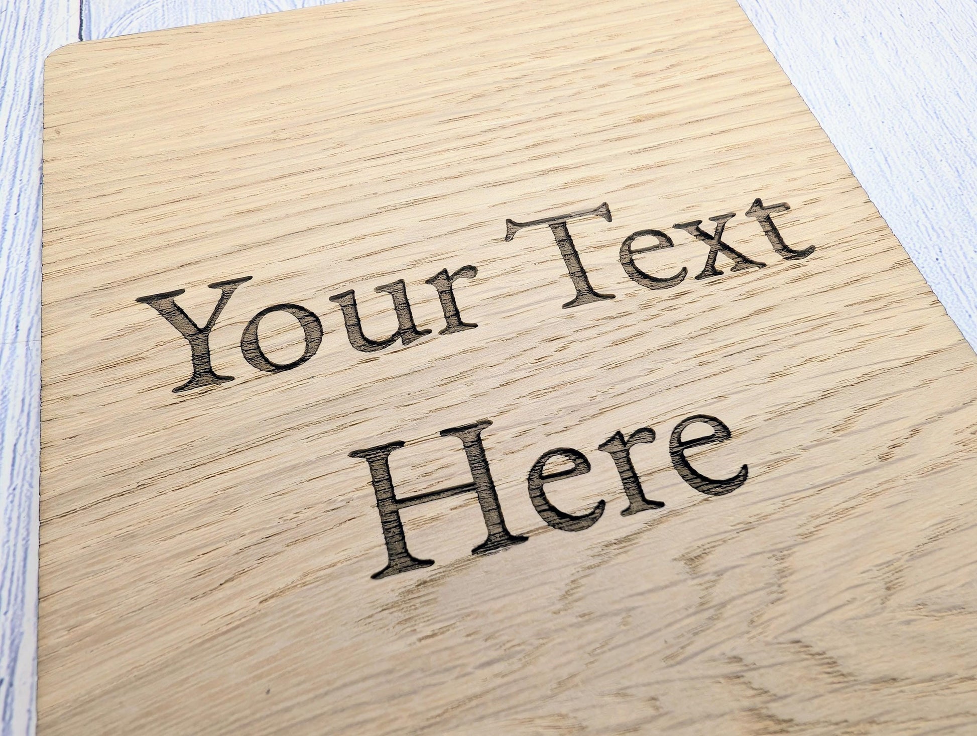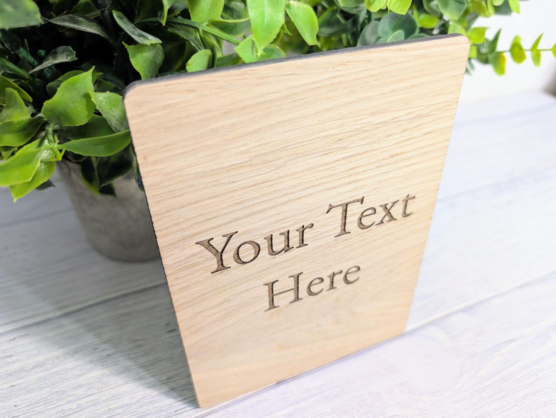 Personalised Oak Sign – Custom Text Portrait Plaque – Wooden Business or Home Sign – Freestanding or Stick-On Display