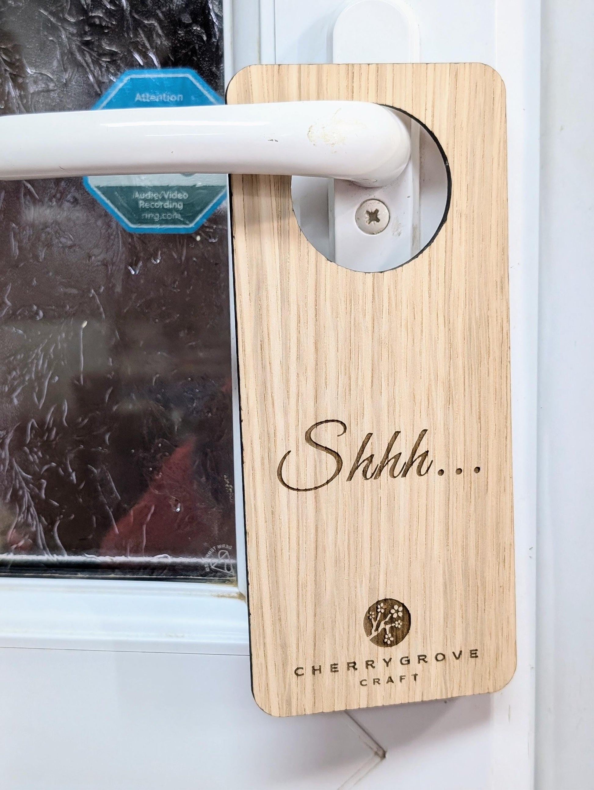 This beautifully crafted wooden door hanger is perfect for hotels, guest rooms, or even at home. One side features "Shhh..." for quiet moments, and the other says "Please Make Up My Room." Made from sustainable wood, this sign can also be personalised with your logo, adding a professional touch to any space. Ideal for hospitality use, the natural wood finish complements any décor.