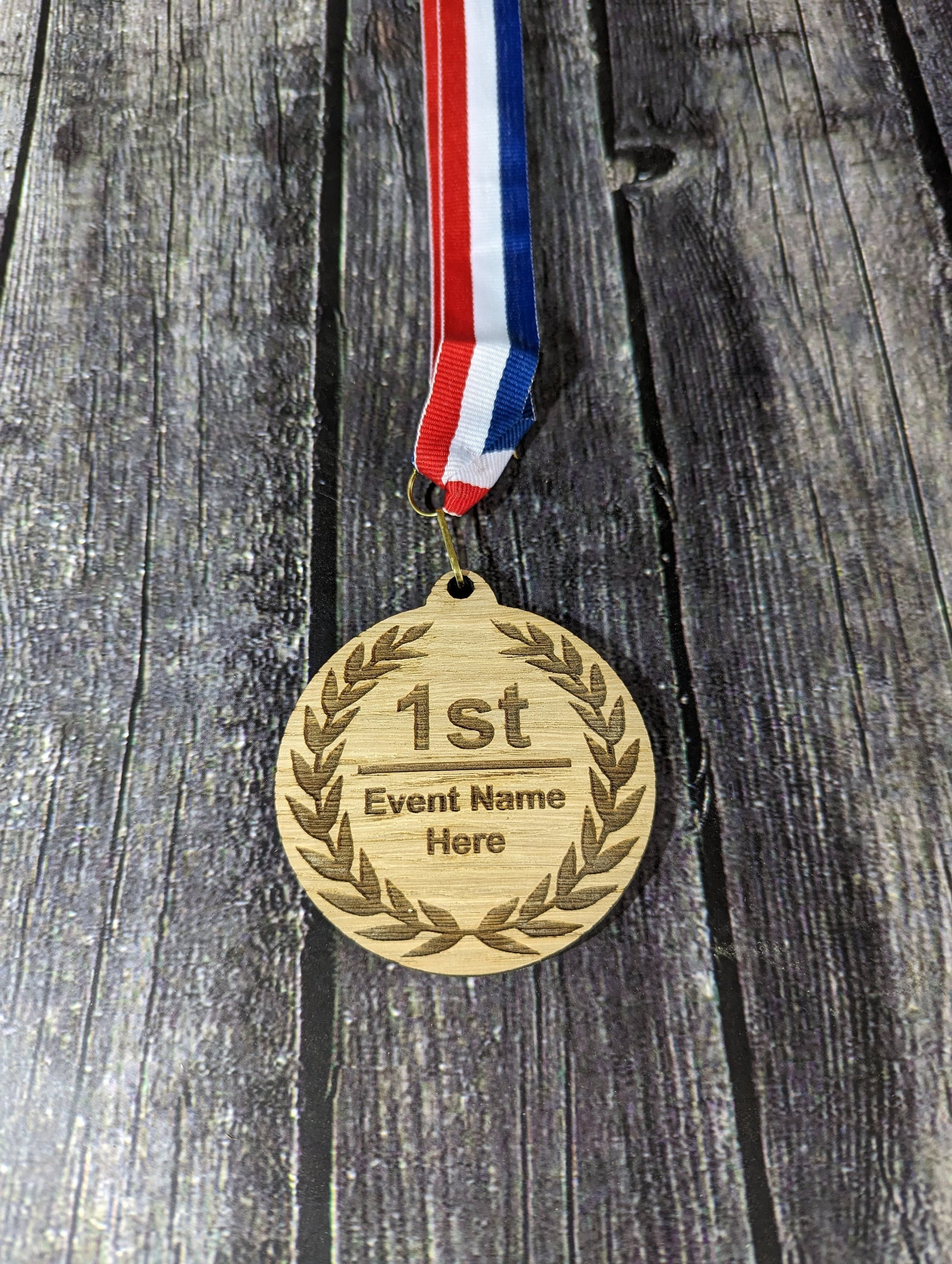 Wood makes a perfect traditional rustic medal that will be treasured forever.