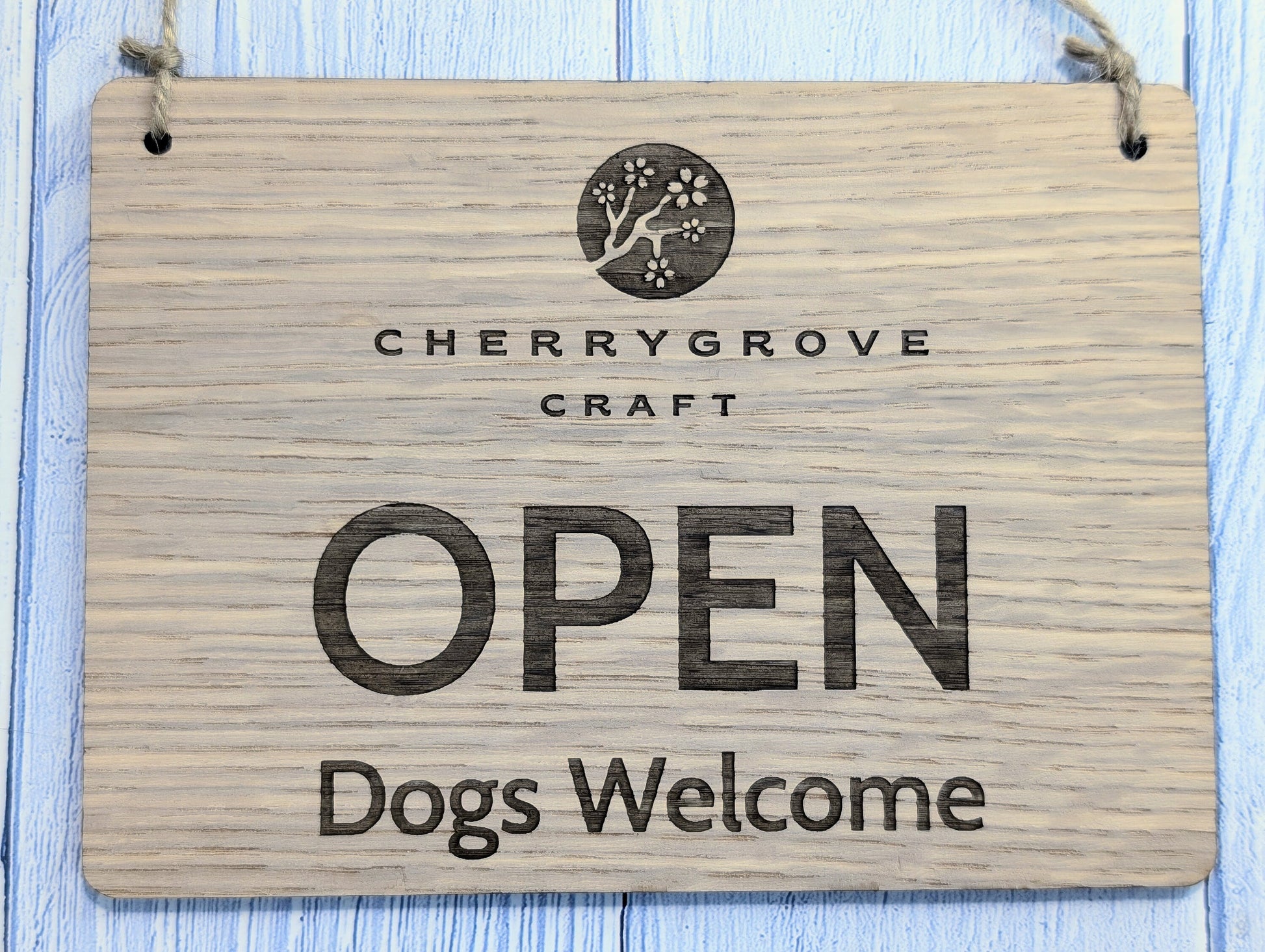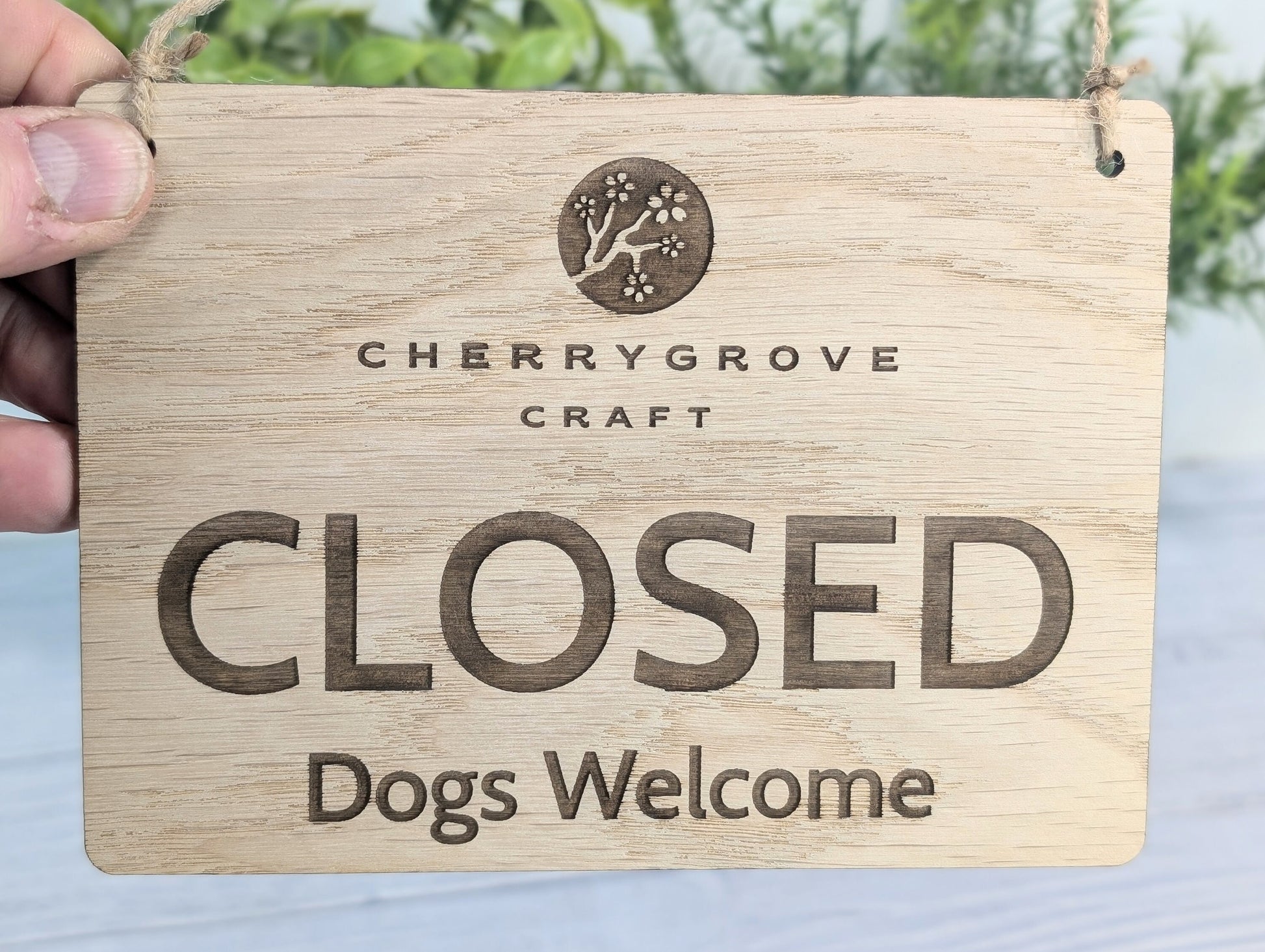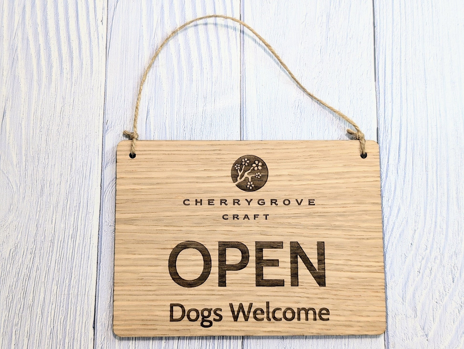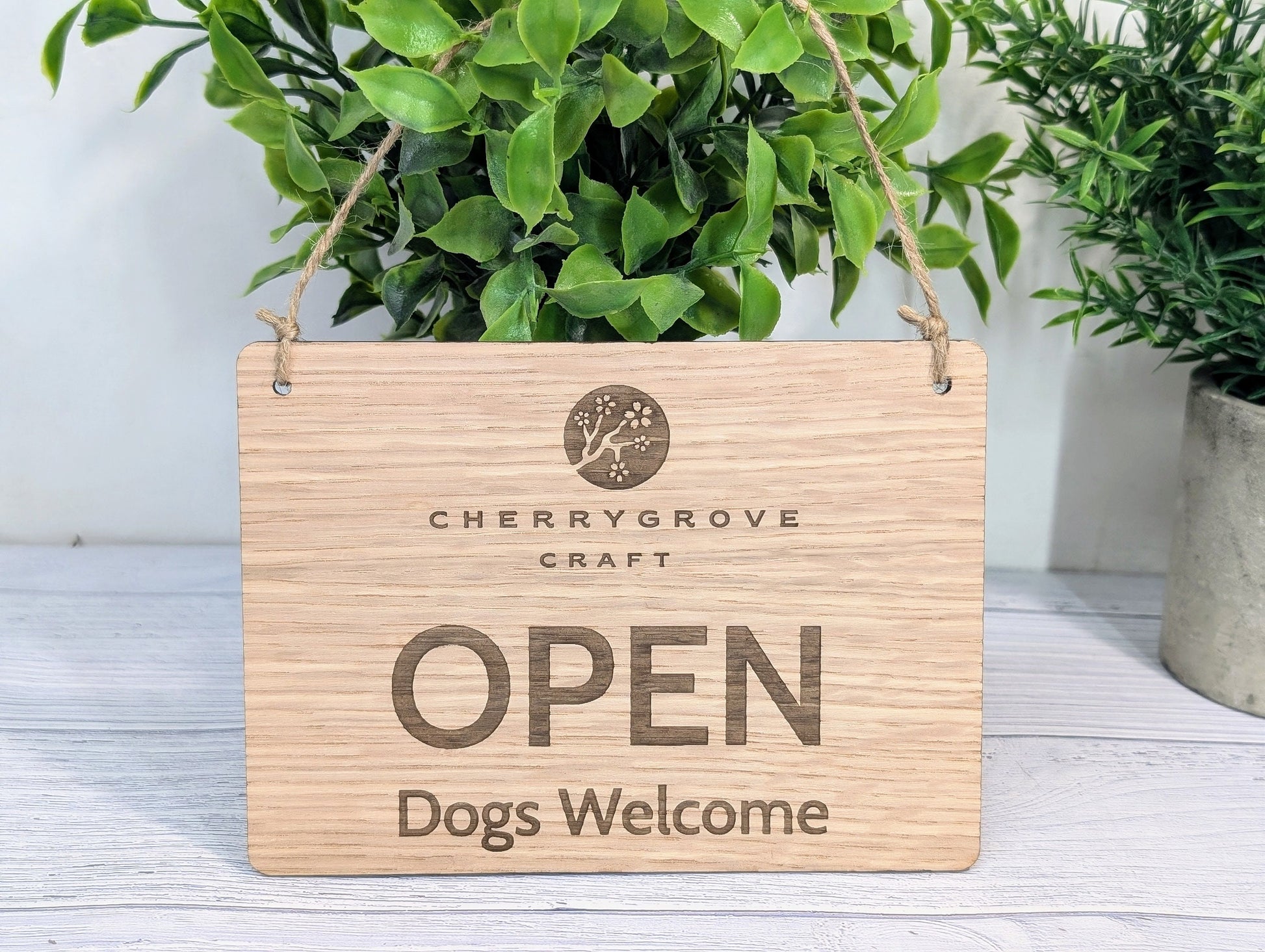 Personalised Wooden Open and Closed Dog Friendly Sign for Business - Eco-friendly 2 Sided Oak Veneered, Wood Signage, Shop Door Plaque