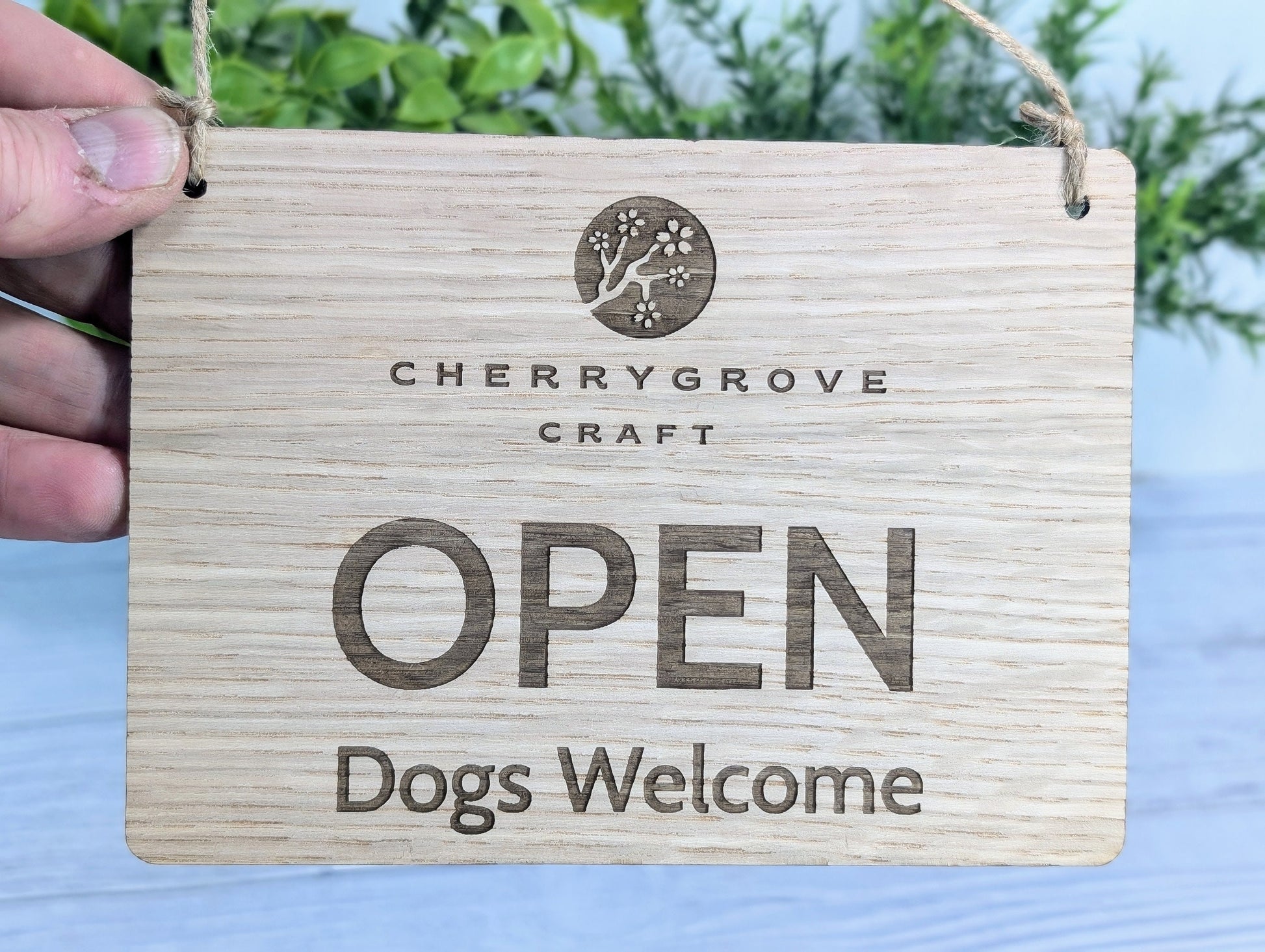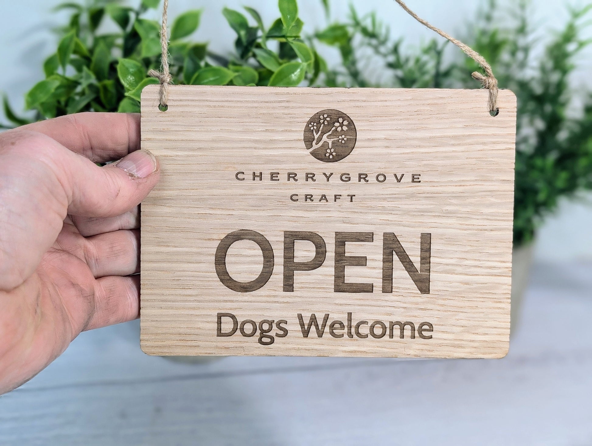 Make your business stand out with this personalised wooden open and closed sign and its Dog Friendly too! Made from eco-friendly oak veneered MDF, this sign is perfect for any business looking for a sustainable option. The sign features "Open" on one side and "Closed" on the other, so you can easily let customers know whether you're available.