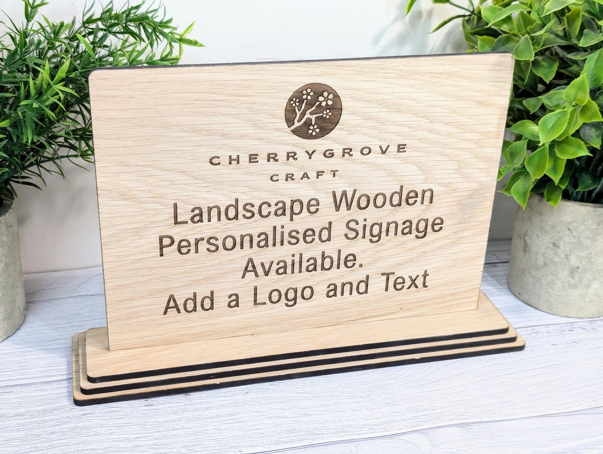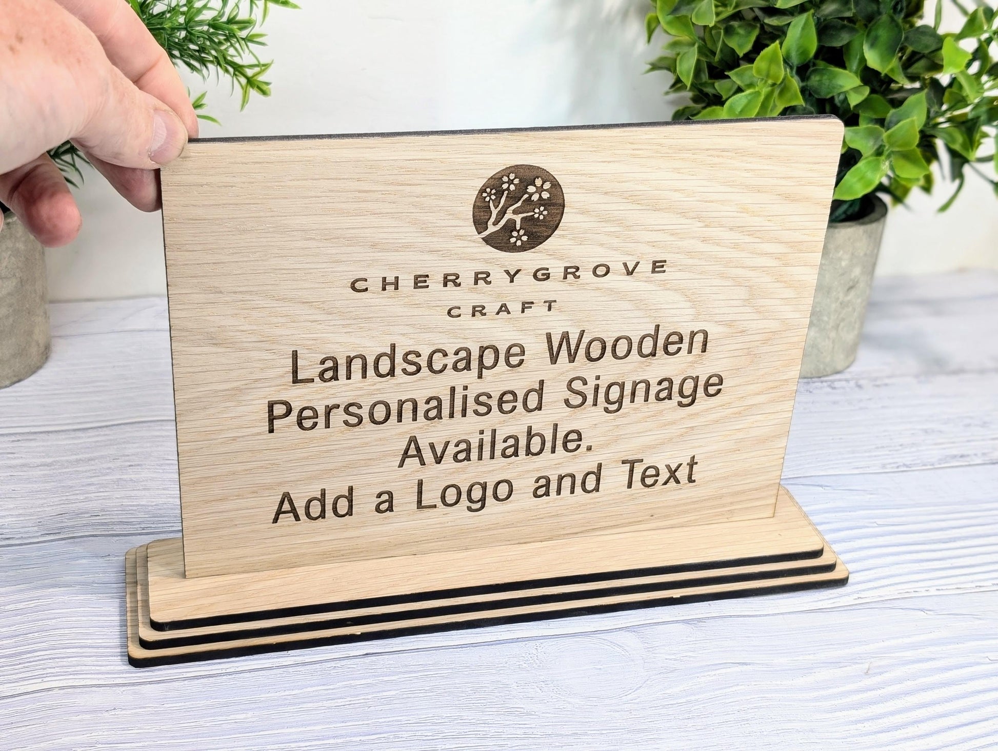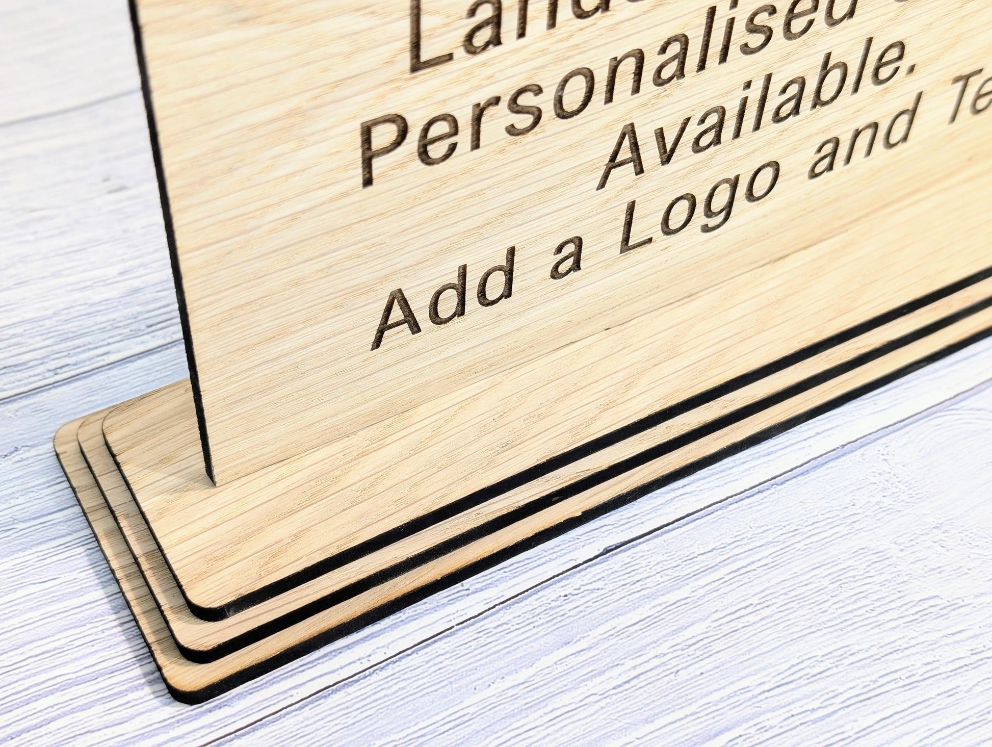 Personalised Wooden Table Signs XL - Custom Text, Logo, Freestanding, Removable Base, Two Sizes, Conference, Wedding, Retail, AirBnB Signage