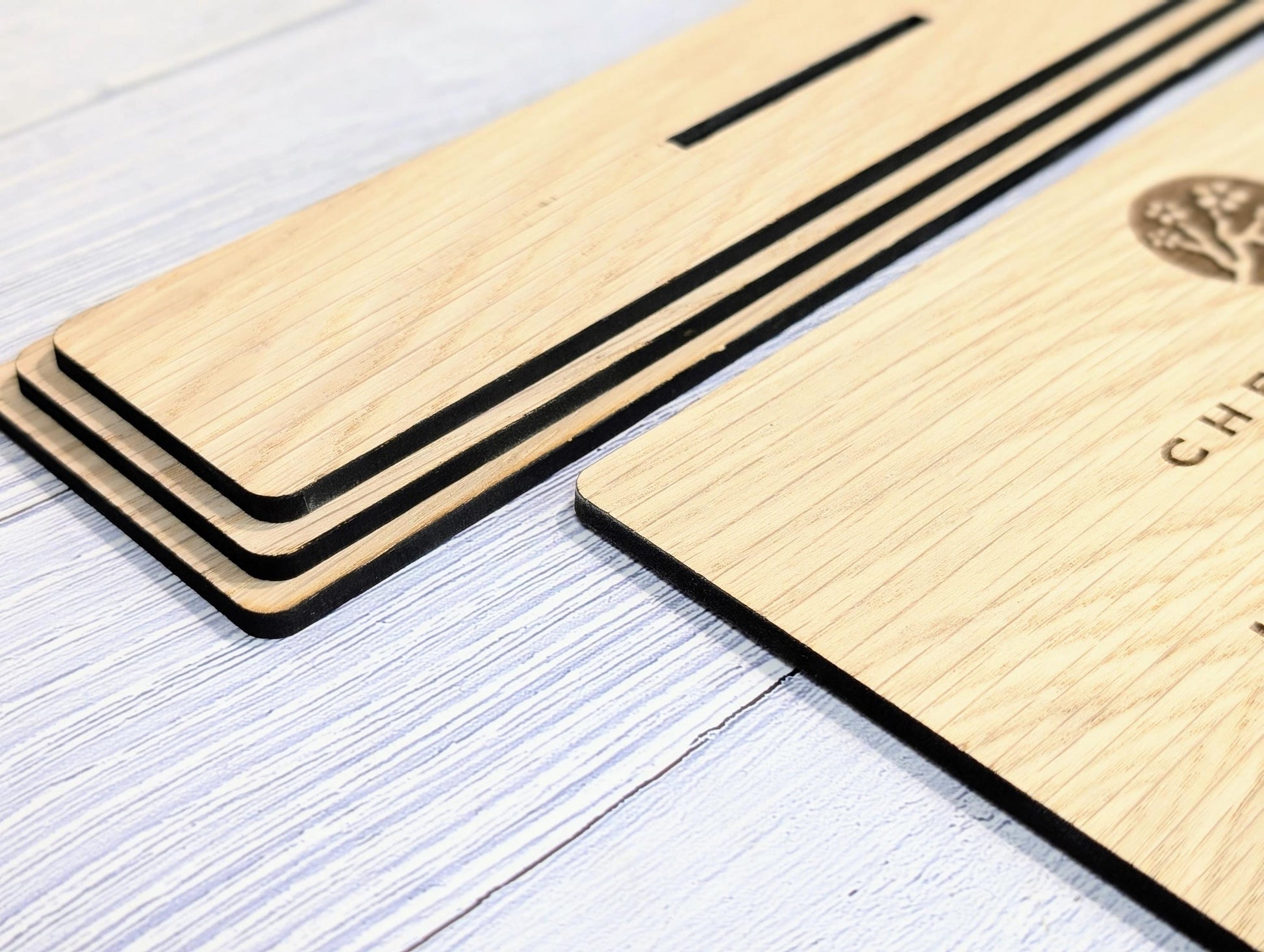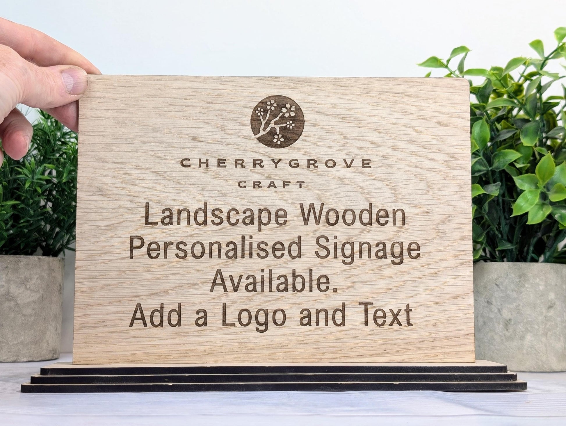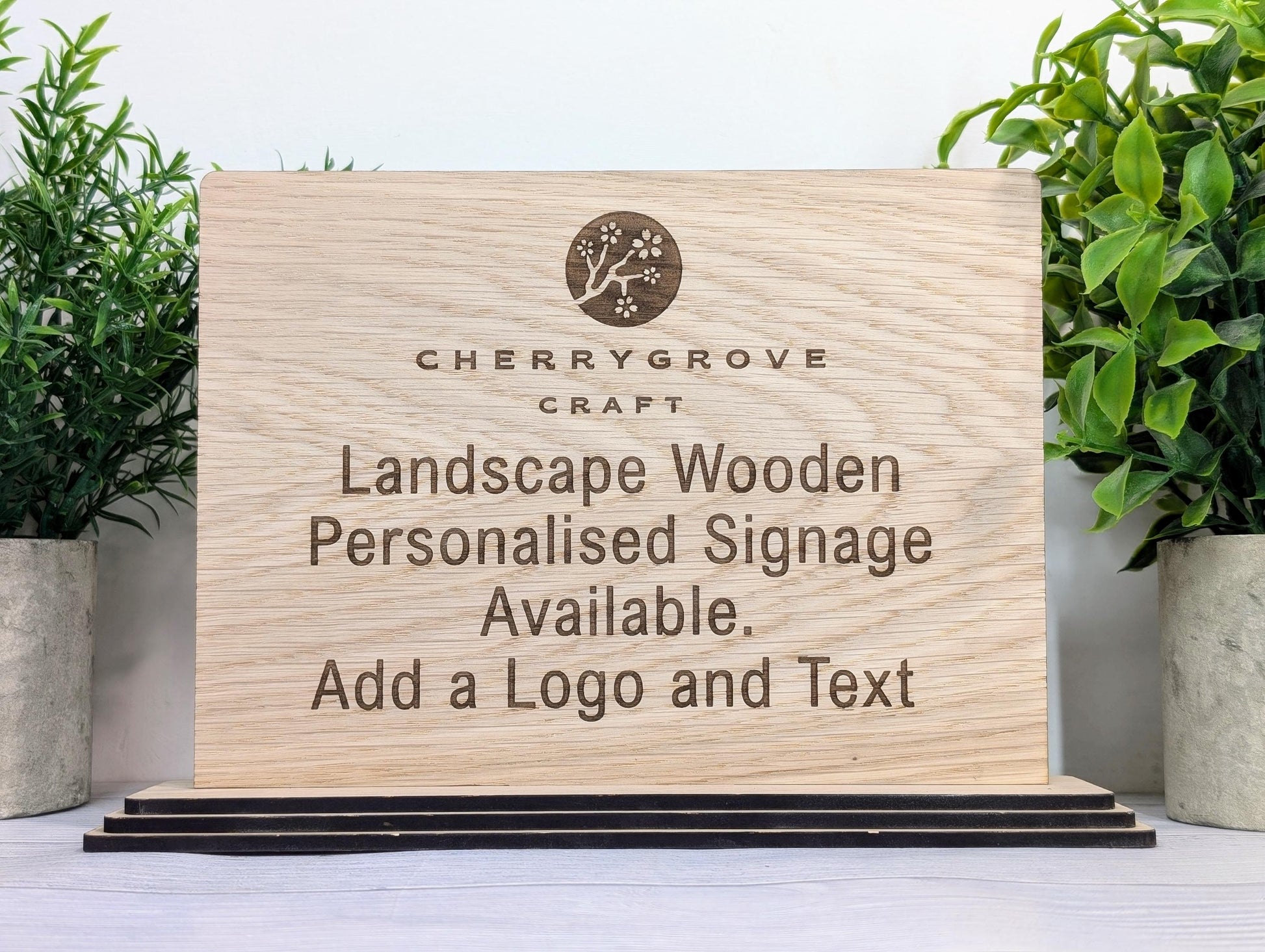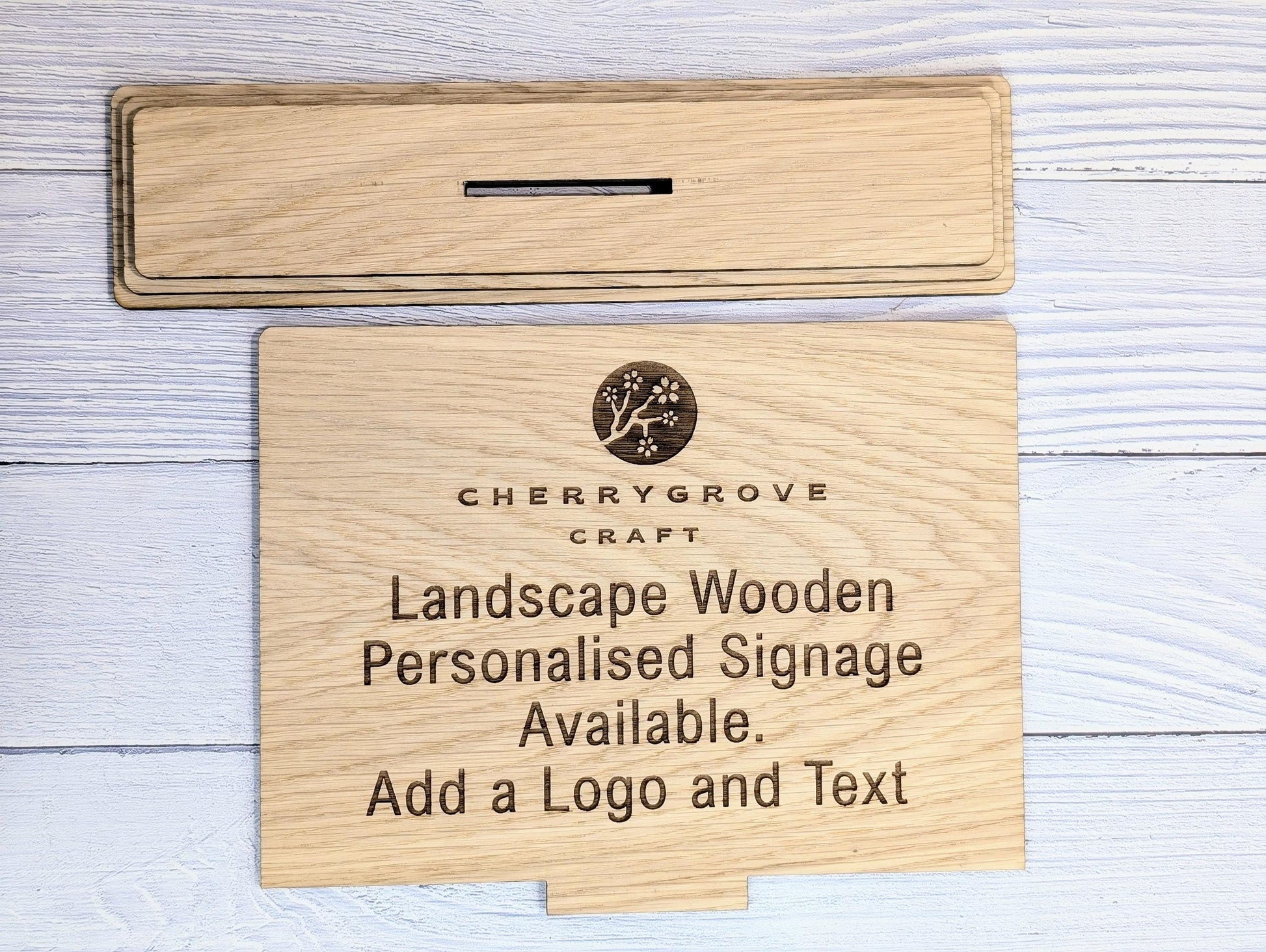 Personalised Wooden Table Signs XL - Custom Text, Logo, Freestanding, Removable Base, Two Sizes, Conference, Wedding, Retail, AirBnB Signage
