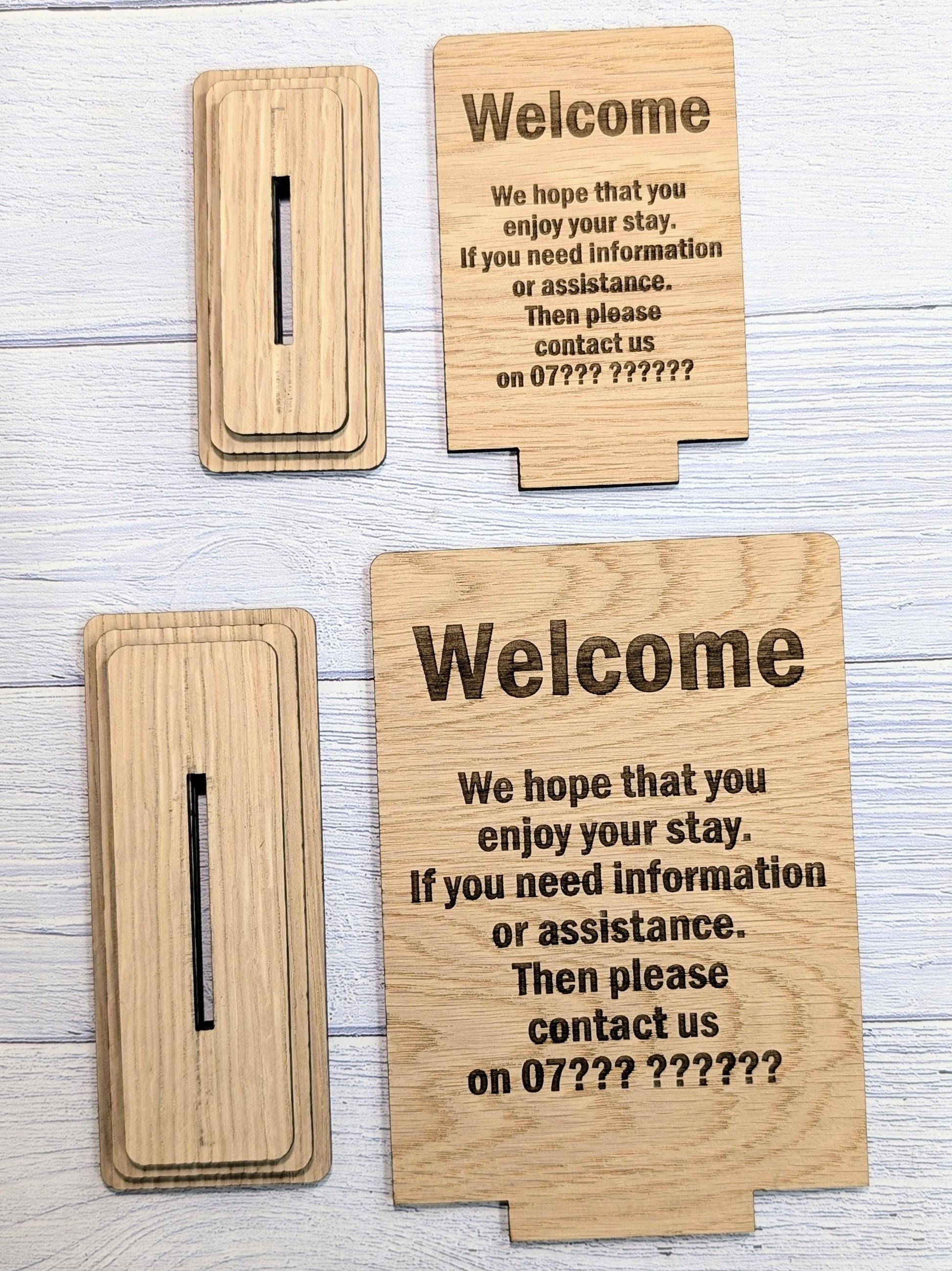 Ensure your guests understand your requirements with our personalised wooden Welcome Sign. This custom sign is ideal for home and rental property owners, allowing you to welcome your guests and provide your contact details.