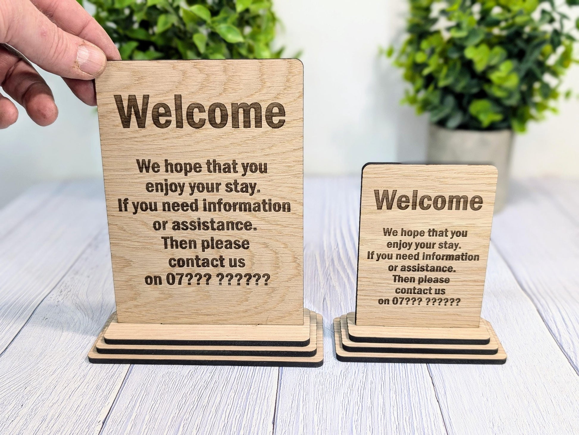 Personalised Wooden Welcome Sign – Perfect for Your Home, Rental Properties, Holiday Homes, B&Bs | Wood Table Signage | Two Sizes