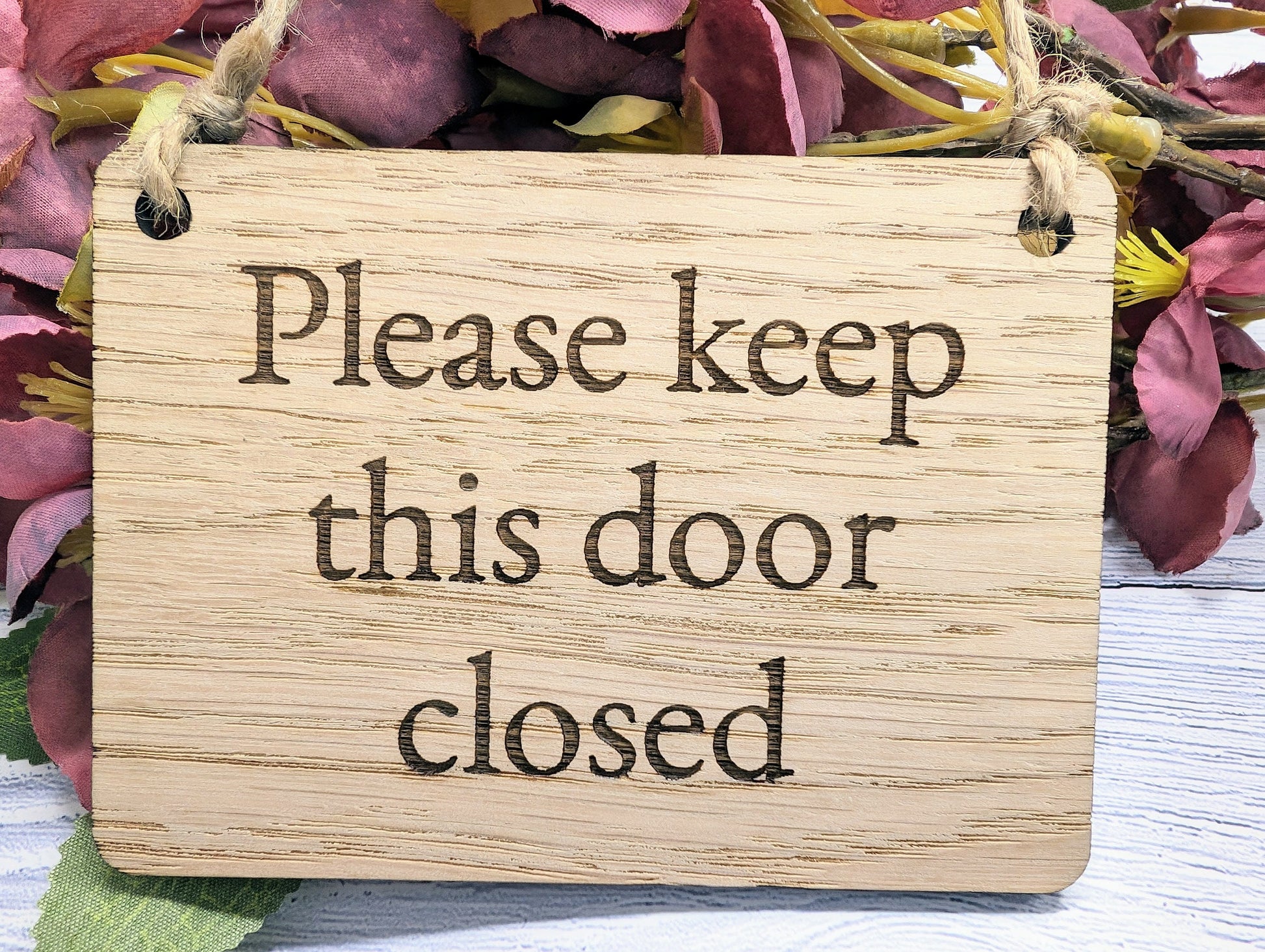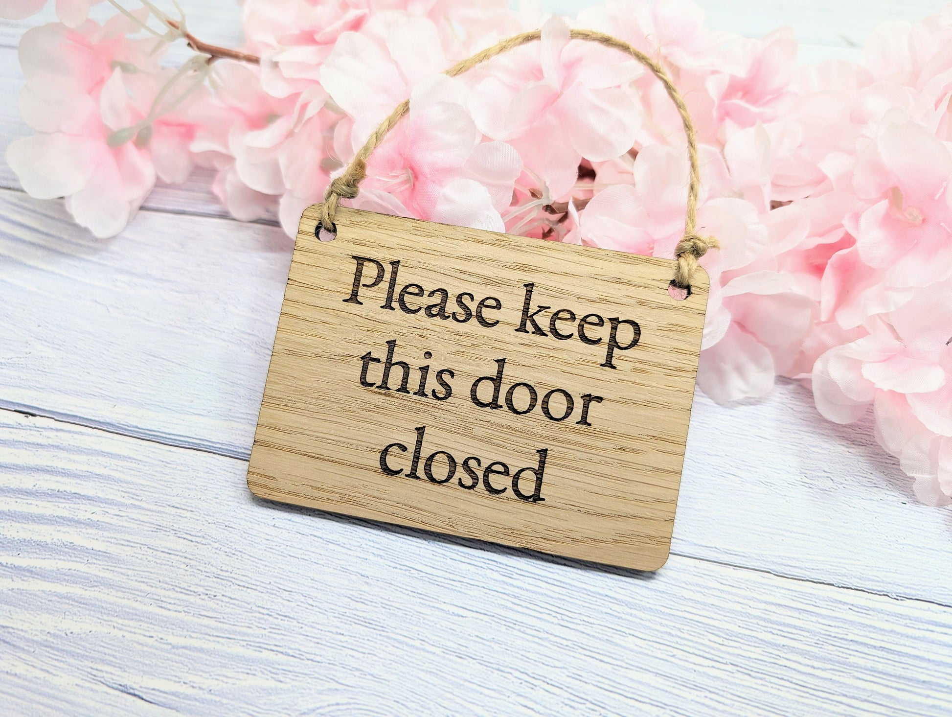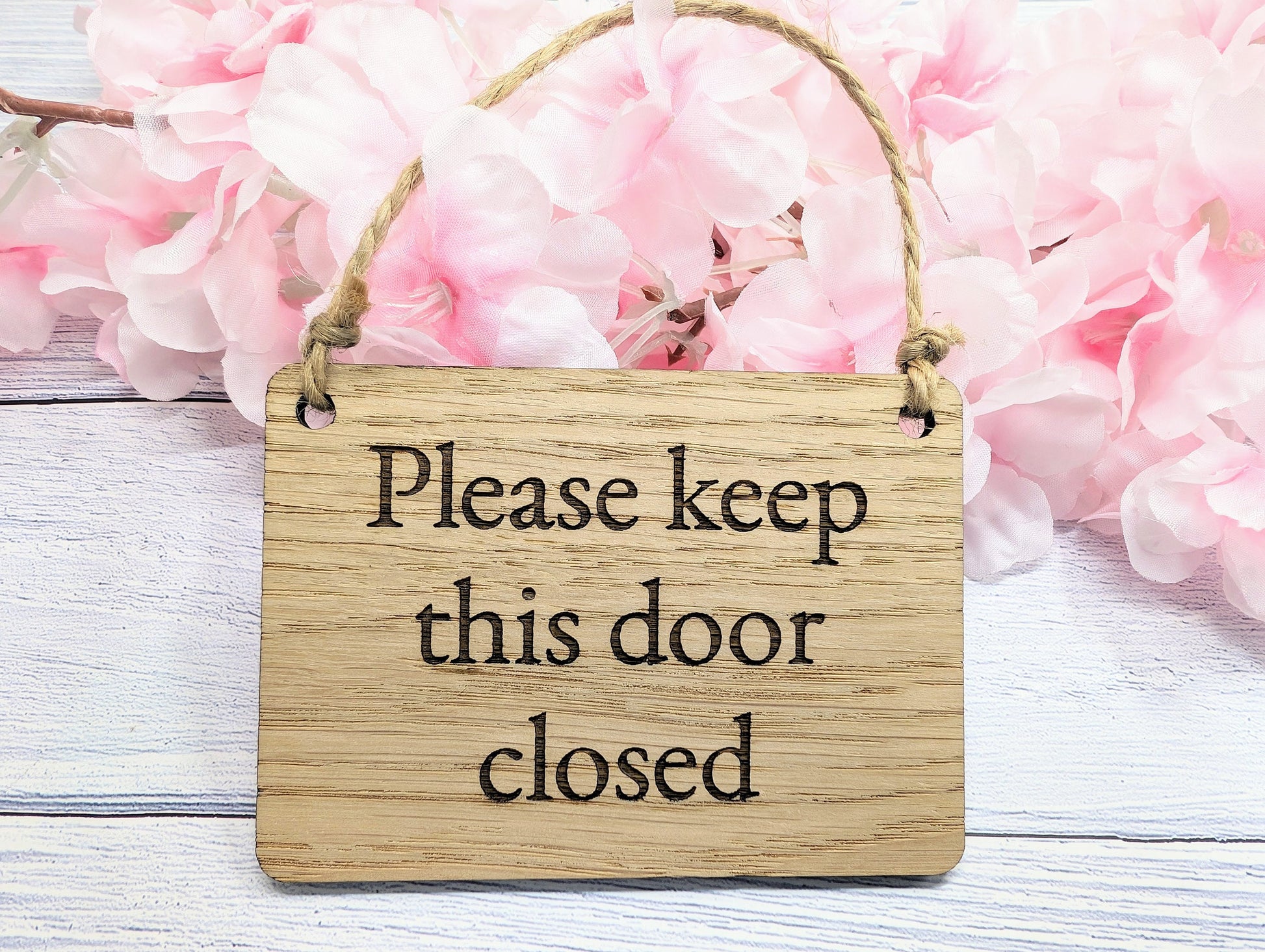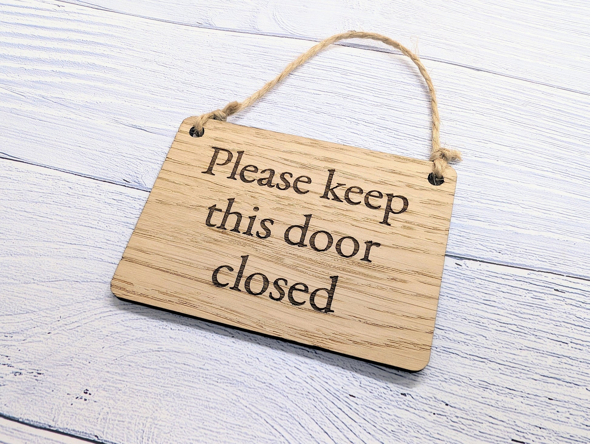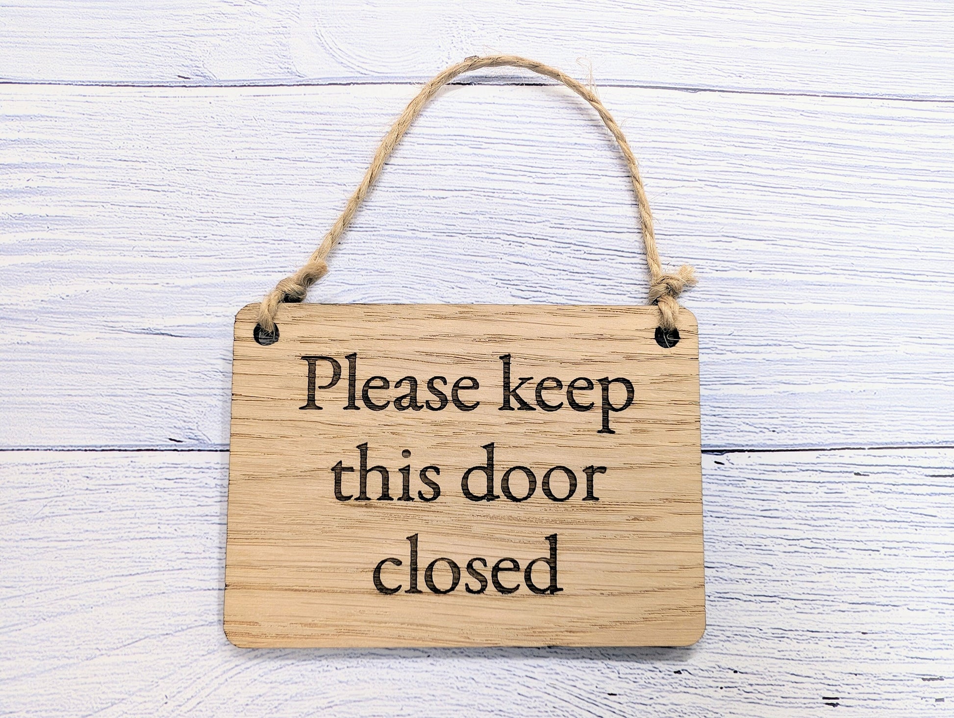 Please Keep Door Closed Sign - Custom Text Option, Personalisable Sign Oak MDF, Eco-Friendly, 4 Sizes, Door Reminder Plaque