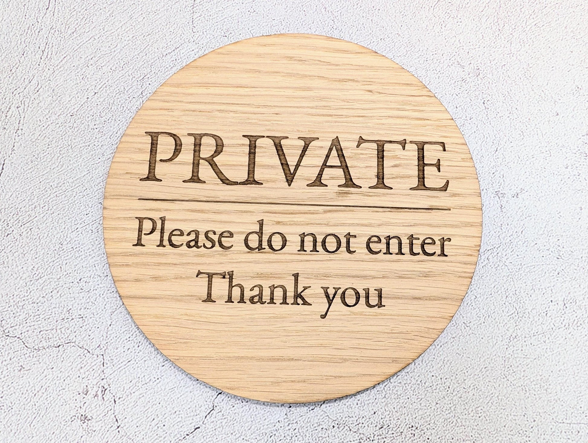 Private Do Not Enter Sign – Circular Oak Veneered Wooden Sign for Business, BnB or Home, Indoor Use Only, Handmade in Wales, Plastic-Free