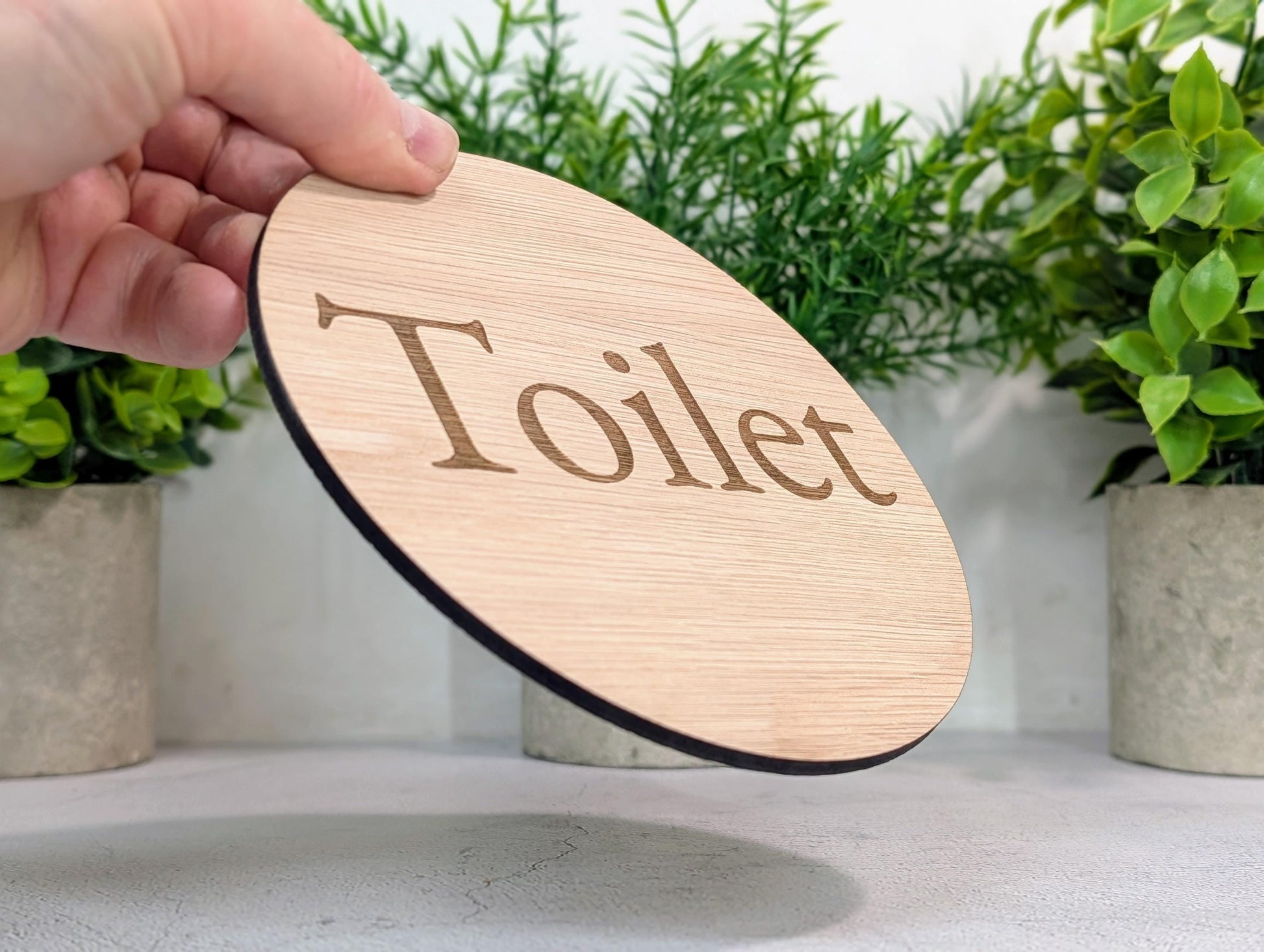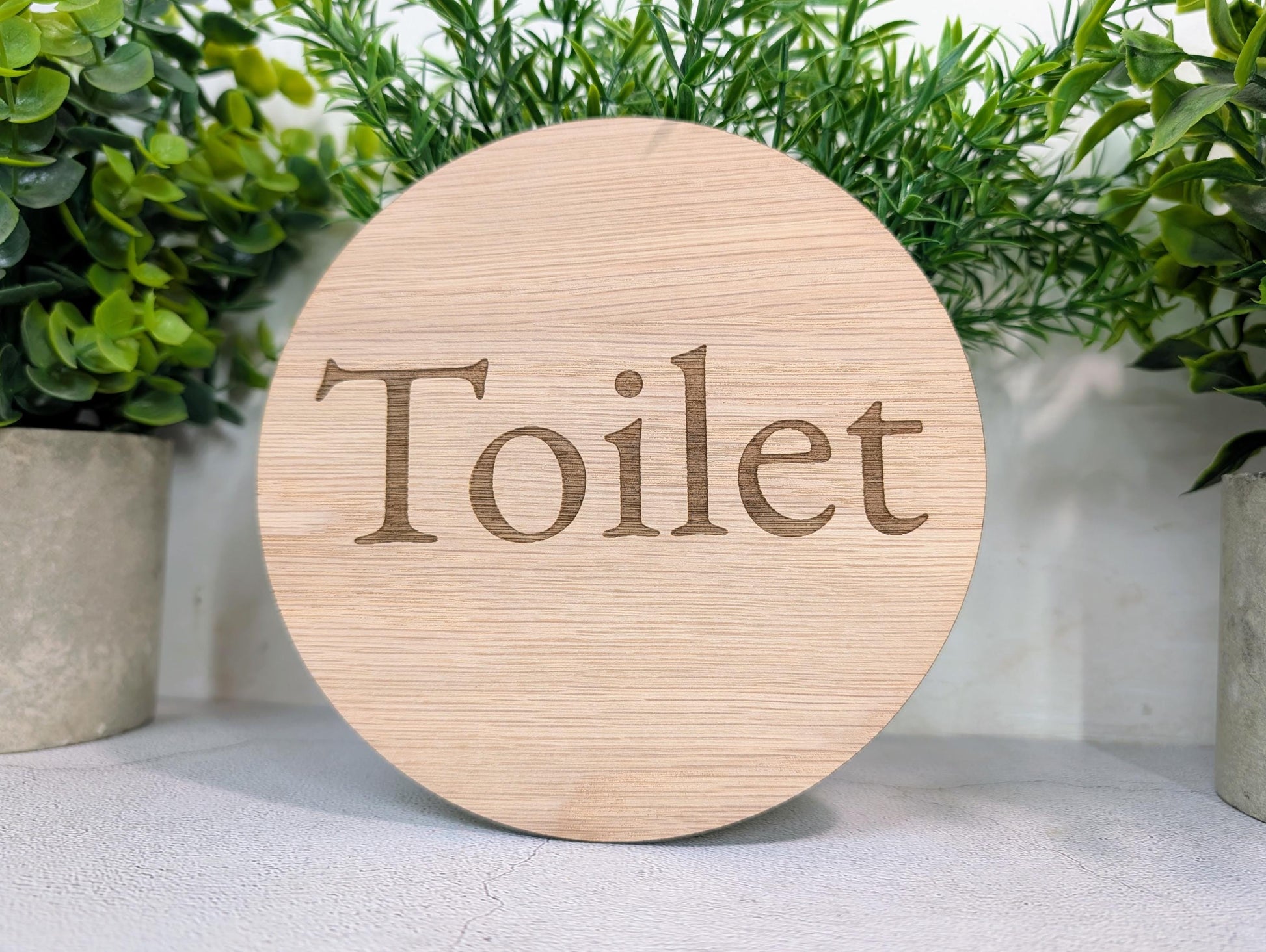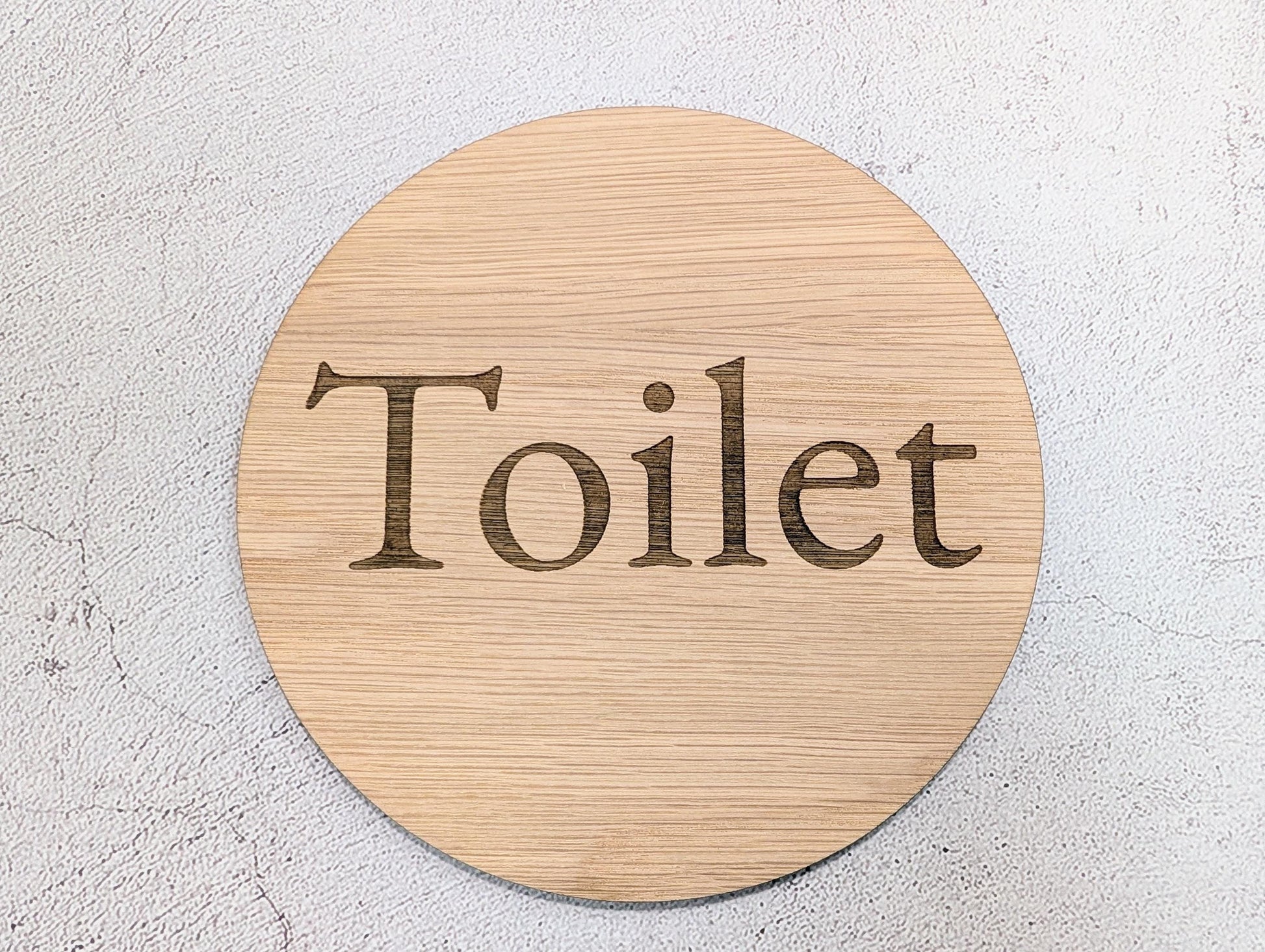 A simple, natural way to mark your bathroom or loo—this circular oak veneered “Toilet” sign is laser engraved into FSC-certified MDF for a warm, professional finish. Whether for cafés, studios, shops or home use, it’s a neat and eco-conscious alternative to plastic signage.