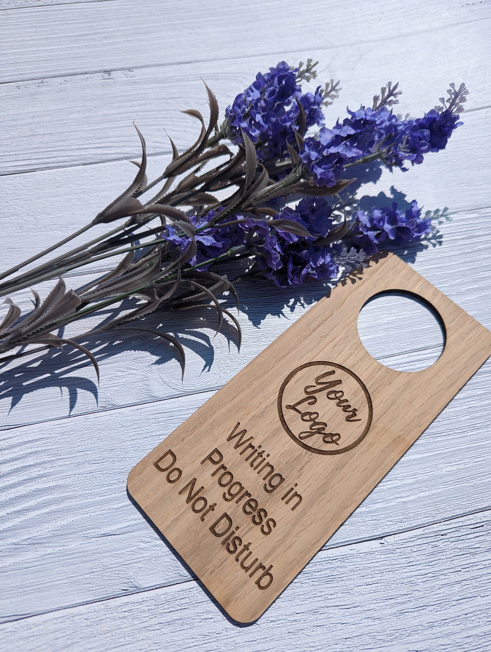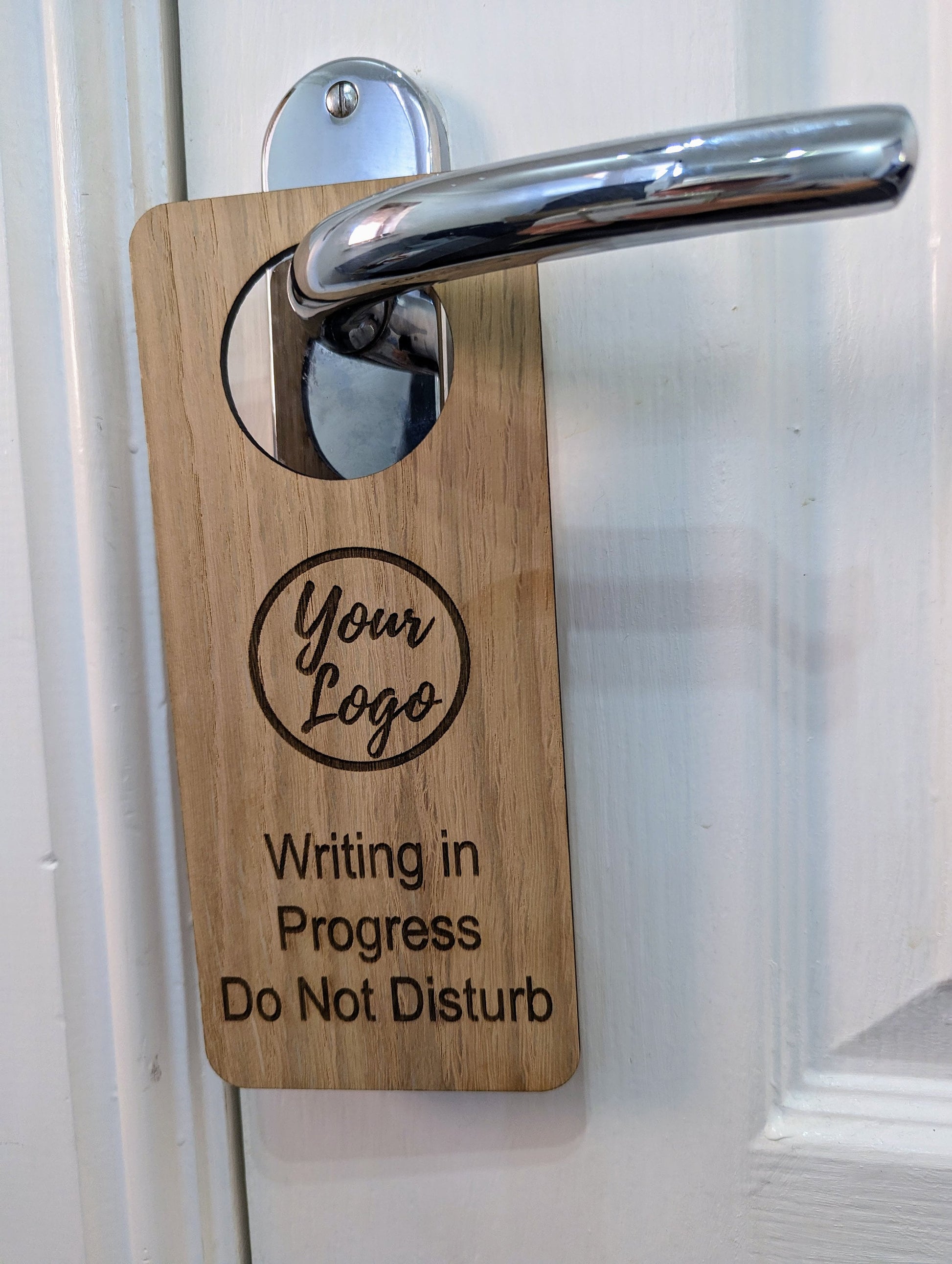 Writing in Progress, Do Not Disturb - Door Hanger, Personalised Sign, Room Sign, Study Room Sign, Oak Plaque, Logo Door Sign